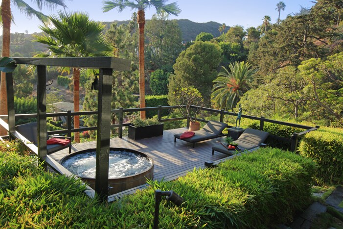 The Naikan house is a beautiful unique Japanese inspired hilltop home located in the Hollywood Hills overlooks Outpost Canyon treetops, West Los Angeles, Pacific Ocean and mountain views. This fully furnished, split level main house has 3-bedrooms, 3-bathrooms with functional and luxurious amenities that are truly unique with LA’s best sunsets. There’s also a separate exquisite bedroom studio with full bathroom, kitchen and private entrance. With amazing views and location, walking distance to the Hollywood Walk of Fame, Runyon Canyon, Hollywood Bowl, Yamashiro Restaurant, Magic Castle, and more. As you enter the gated estate, you’re surrounded by tranquil Japanese gardens. Peaceful, quiet and serene. Interior: 3 bedrooms, 3 bathrooms with attached deluxe garage. 2 primary bedrooms, each with ensuite bathrooms with access to private patio deck. Cook’s kitchen with state-of-the-art stainless-steel appliances and counters. Pass-through to outdoor from front living room and interior dining rooms. Hardwood floors throughout, living room fireplace, one of a kind collectable artwork throughout and much more. Full-sized front loading deluxe washer and dryer both with steam and additional special garment washer. Also, a fully furnished guest suite with full kitchen and bath with Japanese soaking tub, sitting room, private patios and entrance. Multi-level Wi-Fi. Large high-security safe available for your valuables. New large glass sliders throughout all with black out shades that are motorized on upper floor and primary suite. Toto Neorest wash less and Toto toilets throughout. Exterior: 7 outdoor private decks/patios with extensive landscape lighting and panoramic city, ocean and canyon views, 3 compartment raised bed vegetable gardens. 2 outside dining patios both with gourmet BBQ grills off the kitchen, 5 large solid wood picnic tables perfect for outdoor entertainment. 6-person hot tub with blue tooth sound and 2 outdoor rain showers, very private. Pristine designed landscaping surrounding the house with Japanese inspired and exotic succulent plantings throughout. The Naikan House is a High Quality Completely Finished Residence ready to rent for the entire year or longer preferred. Will be looking for a very quiet respectful long-term tenant. Requirements: 100% NO party house: No party house Rental Rules will apply...Good credit along with 1st and security deposit. No dogs, cats unless pre-approved with additional Loving Pet security deposit required. Standard Rates: Partially furnished 10,750.00 per month - Mostly Furnished 11,750.00 plus 2 x security deposit required. Please feel free to ask any questions you may have... Thanks so much!