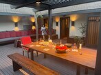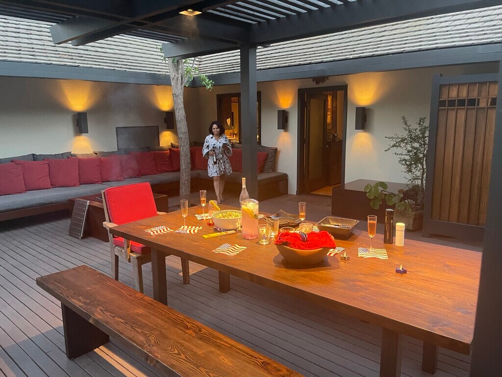 The Naikan House is a beautiful unique Japanese inspired hilltop home located in the Hollywood Hills overlooks Outpost Canyon treetops, West Los Angeles, Pacific Ocean and mountain views. This fully furnished, split level main house has 3-bedrooms, 3-bathrooms with functional and luxurious amenities that are truly unique with LA's best sunsets. Included is separate fully furnished 1-bedroom studio with full bathroom, kitchen, 2 outdoor patios furnished all with its own private entrance. All with amazing views, location, walking distance to the Hollywood Walk of Fame, Runyon Canyon, Hollywood Bowl, Yamashiro Restaurant, Magic Castle, and more. As you enter the gated estate, you're surrounded by tranquil Japanese gardens. Peaceful, quiet and serene. Interior: 3 bedrooms, 3 bathrooms with attached deluxe garage. 2 primary bedrooms, each with ensuite bathrooms with access to private patio deck. Small Cook's kitchen with state-of-the-art stainless-steel appliances and counters. Pass-through to outdoor from front living room and interior dining rooms. Hardwood floors throughout, living room fireplace, one of a kind collectable artwork throughout and much more. Full-sized front loading deluxe washer and dryer both with steam and additional special garment washer. Also, a fully furnished separate guest studio with full kitchen and Full bath with Japanese soaking tub, sitting room, private patios and entrance. Multi-level Wi-Fi. Large high-security safe available for your valuable for additional fee. New large glass sliders and windows throughout some with black out shades that are motorized on upper floor and primary suite. Toto Neorest wash less and Toto and good toilets throughout. Exterior: 7 outdoor private decks/patios with extensive landscape lighting and panoramic city, ocean and canyon views, 3 compartment organic raised bed vegetable gardens. 2 outside dining patios both with gourmet BBQ grills directly off the kitchen, 4 large solid wood picnic tables perfect for outdoor entertainment. 6-person hot tub with blue tooth sound and 2 outdoor rain showers, very private. Pristine designed landscaping surrounding the house with Japanese inspired and exotic succulent plantings throughout. The Naikan House is a High Quality Completely Finished Residence ready to rent for the entire year, longer lease preferred. Looking for a very quiet lowkey respectful long-term tenant. Requirements: 100% NO party house: No party house Rental Rules will apply...Good credit along with 1st and security deposit. No dogs, cats unless pre-approved with additional Loving Pet security deposit required. Standard Rates: Mostly Furnished 10,750k Fully Furnished 11,750k plus 2 x security deposit required 21,500k. Large built in safe available for additional fee. Please say hello and ask any questions you may have.... Thank You! Hope to see you soon at the incredible Naikan House!