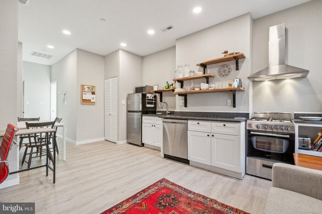 RITTENHOUSE SQUARE, Completely renovated One bed, One bath unit with open floor plan, step down (split level) bedroom area and terrific natural light. High ceilings, lots of windows, central air and WASHER & DRYER in unit are just a few reasons why you should live here! This stylish open concept, kitchen, living & dining combination is truly not to be missed. Minutes to world class dining, retail, universities, hospitals. Convenient to train, plane, bike path, dog park and more. Come see and fall in love. *photos are from previous tenant.