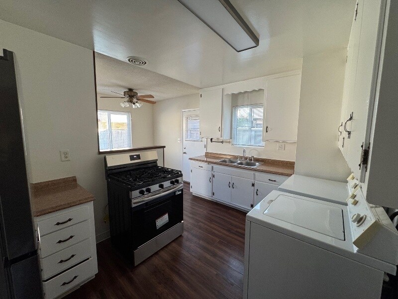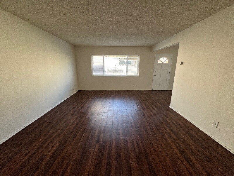 MAKE THIS YOUR NEW HOME!! This adorable freestanding rear duplex is completely private with a large fence wrap around yard and offers laminate hardwood floors throughout, new carpet in the bedrooms, a large kitchen with granite kitchen counter tops, new stainless steel fridge and stove, a dining area, ceiling fans, washer/dryer hook-ups in the unit (washer/dryer available for tenant use), 1 1/2 baths and 1 garage parking space. Close to schools and parks and minutes from the beach! ONLY ONE QUIET PET ALLOWED!! AVAILABLE NOW!!