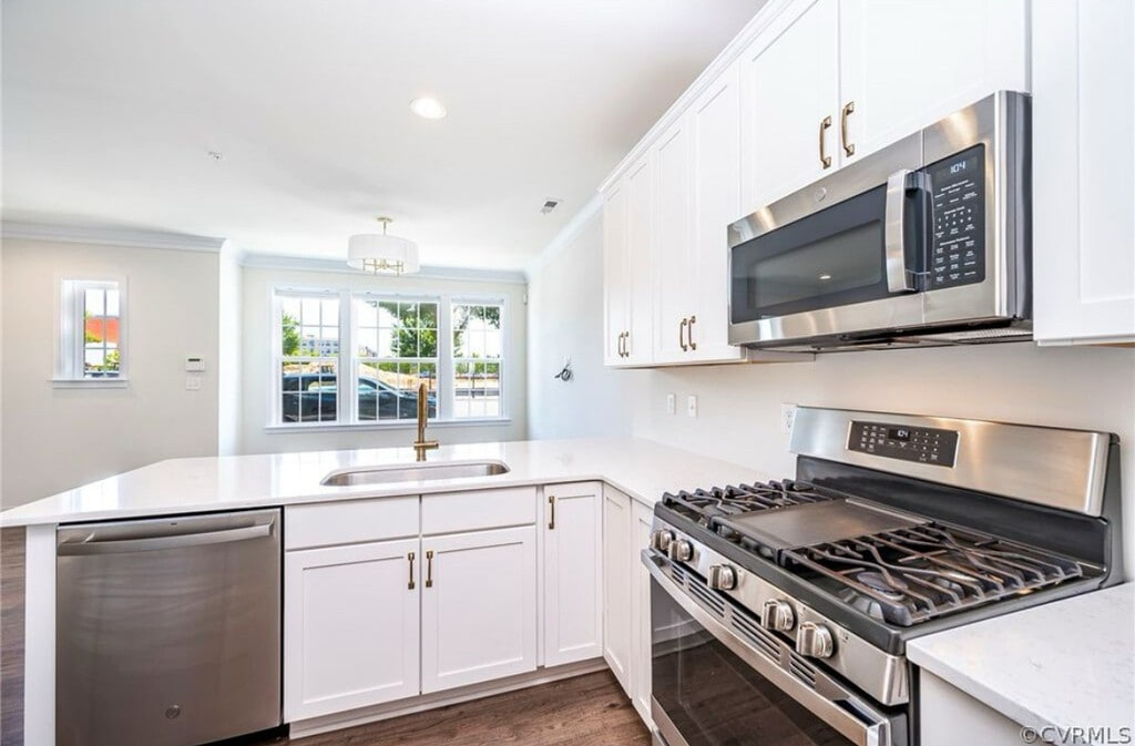 Welcome to Libbie Mill! This first-level updated condo at Libbie Mill Midtown Townhomes is just a short walk from beautiful Libbie Mill library, several popular restaurants, local bars and coffee shops. The Shops at Willow Lawn and Libbie & Grove are just a few minutes away. The first floor has your living room, half bath, and a gourmet kitchen featuring GE stainless appliances, Kohler faucets, rejuvenation hardware, a designer kitchen faucet by Franke, granite countertops, and a coffee bar area which leads out to the attached garage. There are high-end fans and lighting throughout the home as well as beautiful hardwood floors. The second level features a spacious secondary living area perfect for whatever your need is; home office space, workout space, or relaxing movie nights. The owner suite has details you will love such as crown molding, walk in closet and a private balcony. The primary bathroom has double vanities, Kohler faucets, extra-large shower with designer tile and bench seat. Also on the second level is the second bedroom, another full bath, laundry area, and spacious linen closet. Community security patrol is another reason to feel great about living in sought after Libbie Mill Midtown. Owner pays for water, sewer, trash. Renter pays for gas and electric. Last month's rent due at signing. No smoking. Pets negotiable.