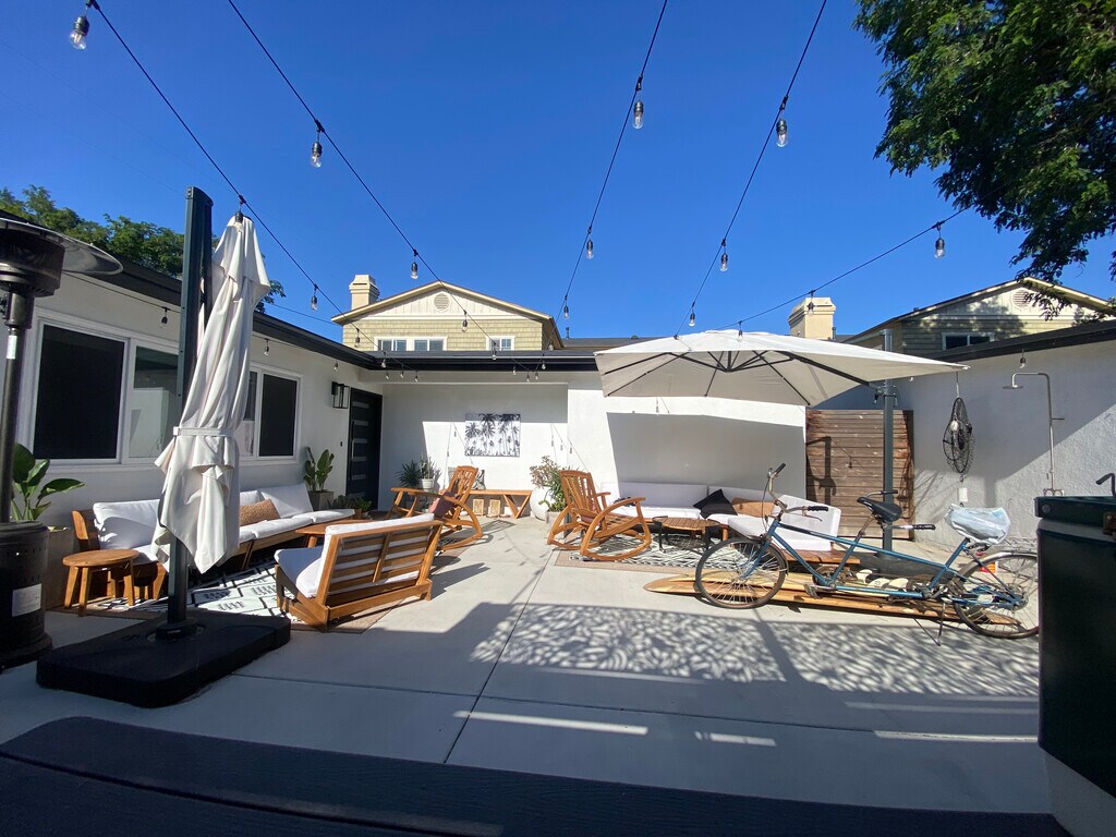 This home is TRULY A GEM. RARE beautiful open plan home features high end finishes, in a cozy space that is ideally located in Redondo Beach, bordering Manhattan Beach. This modern 3 bedroom, 2 bathroom, fully detached home features plenty of off street parking and a large private patio, perfect for low maintenance entertaining. The open and thoughtfully designed kitchen, with it's newer Kitchenaide stainless steel appliances, including a built in microwave, is open to the modern and elegant living space. Large remote control skylights create a feeling of open space with lots of light and airflow. Windows come complete with Majestec Premium Security Screens and remote controlled roller shades. Rear french doors, featuring the same Majestec Premium Security Screens complete the space, allowing you to take full advantage of the unique Southern California indoor/outdoor lifestyle, while maintaining your security and peace of mind. Modern built-ins allow for plenty of storage while maintaining the clean, minimalistic aesthetic. For those chillier nights, enjoy the warmth and coziness of the beautiful beach log gas fireplace. Fully equipped with forced heating and air conditioning to ensure your comfort. The generous primary bedroom boasts large walk in closet and private, spa like bathroom, including large jetted tub. Two additional bedrooms/flex spaces offer lots of options for the active family or the busy professional. Outdoor shower offers easy cleanup for those long beach days or the quick surf session. Excellent location, close to everything, 2 miles to Manhattan Beach Pier and 4 miles to LAX, walking distance to Northrop Grumman, Polliwog Park, and Trader Joe's. Please do not disturb current tenants. Non smoking. Please complete application before requesting tour. Owner pays water and trash, tenant pays all other utilities.