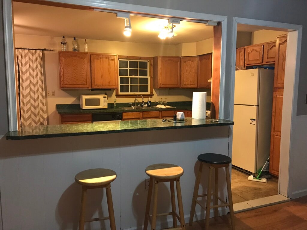 Cozy 2 bedroom with 1 bathroom, with in kitchen and living room. Storage shed in yard. Driveway and on street parking. Laundry room.Rent includes water, sewer and trash fees.