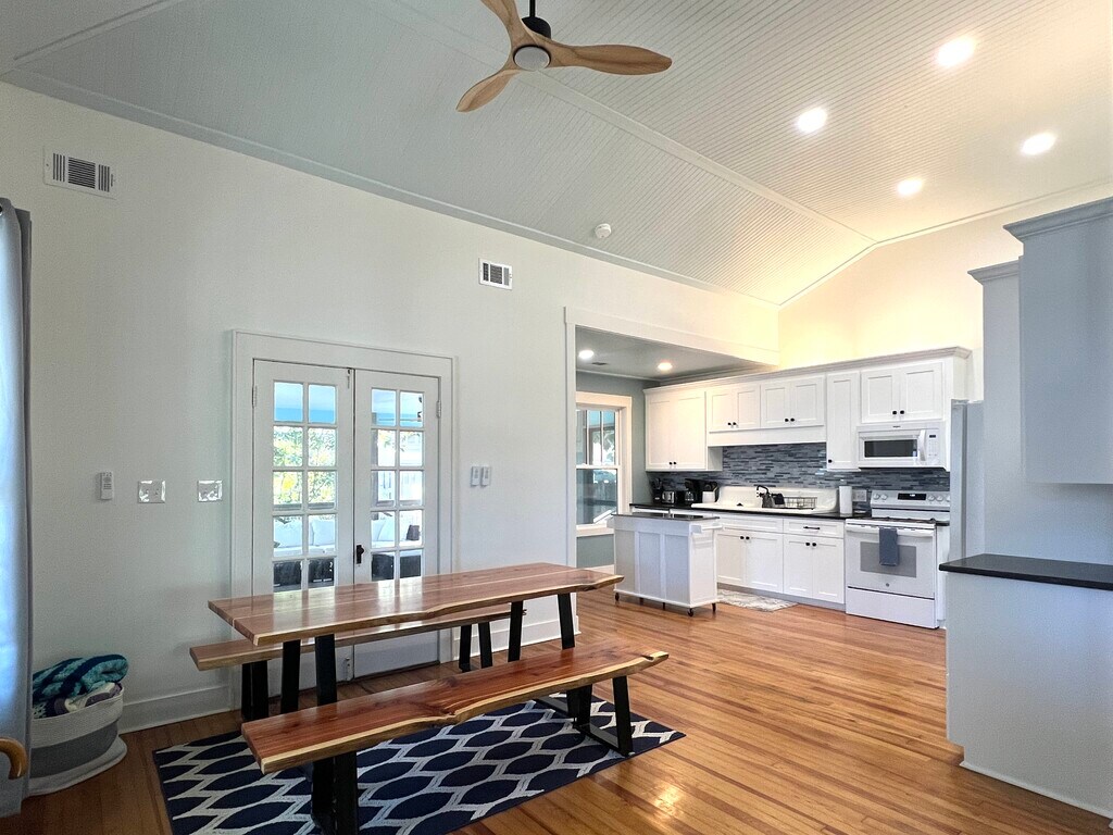 Best of Both worlds- Local archetec has newly renovated thishistorical home. High ceiling, hardwood floors and vintage touched merged with brand new kitchen, baths. This charming 3 bedroom two bath home is fully furnished. The new luxury kitchen, two stunning new bath rooms. Bedroom one has a king bed, bedroom two had a queen bed and bedroom three has two twin beds. Ample parking, hot and cold water outdoor shower. 4 minute walk to the beach.