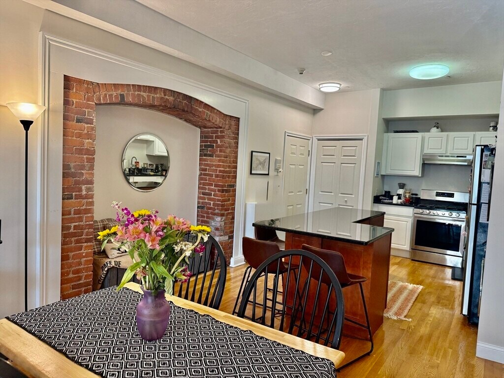 The striking loft-inspired residence offers a flexible open design accentuated by oversized windows, soaring ceilings, & distinctive exposed brick & beams. The sleek kitchen provides an island/breakfast bar plus newer stainless steel appliances. Two well-proportioned bedrooms feature hardwood floors and excellent closet storage. Added conveniences include in-unit laundry, central air, and 2 garage parking. Residents have access to a large shared patio ideal for lounging and grilling, as well as a dedicated garden area.. Nestled on a quiet tree-lined street in lively Inman Square, there is easy access to countless cafés, dining options, and boutiques. Positioned between bustling Central and Union Squares, and only half a mile to the Red Line. Harvard & Kendall/MIT are within a one-mile distance. Walk Score is 93 & Bike Score is 99. Rent covers heat, hot water, gas, parking for 2 cars, bike storage, snow clearance & trash removal. NO PETS.253