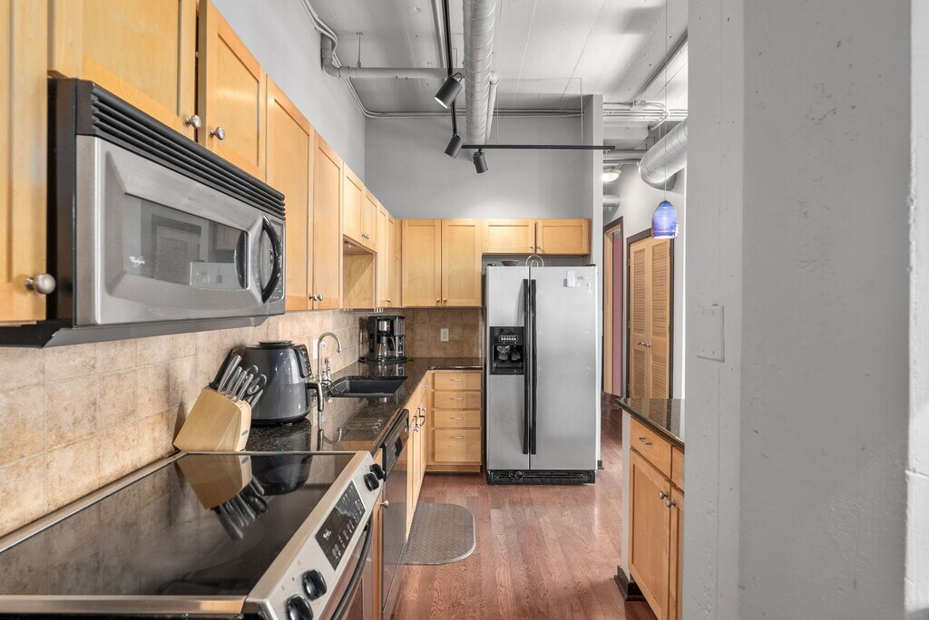 Experience vibrant downtown living at The Lofts at St. Francis! This spacious 1-bedroom, 2-bath condo offers over 1,100 sq. ft. of stylish loft living with incredible views overlooking INTRUST Bank Arena and Naftzger Park. The open layout features a modern kitchen, in-unit washer and dryer, and a private balcony that puts you right in the heart of the action. Step outside and enjoy all that downtown Wichita has to offer — from concerts and games across the street to year-round events, food trucks, and entertainment at Naftzger Park just steps away. Enjoy the convenience of a dedicated garage parking space and take advantage of the building’s premier amenities, including a rooftop outdoor kitchen and lounge area with sweeping views of the Wichita skyline. Whether it’s game night, concert night, or a night out downtown, you’ll love the energy of this location paired with the comfort of coming home to your own retreat.