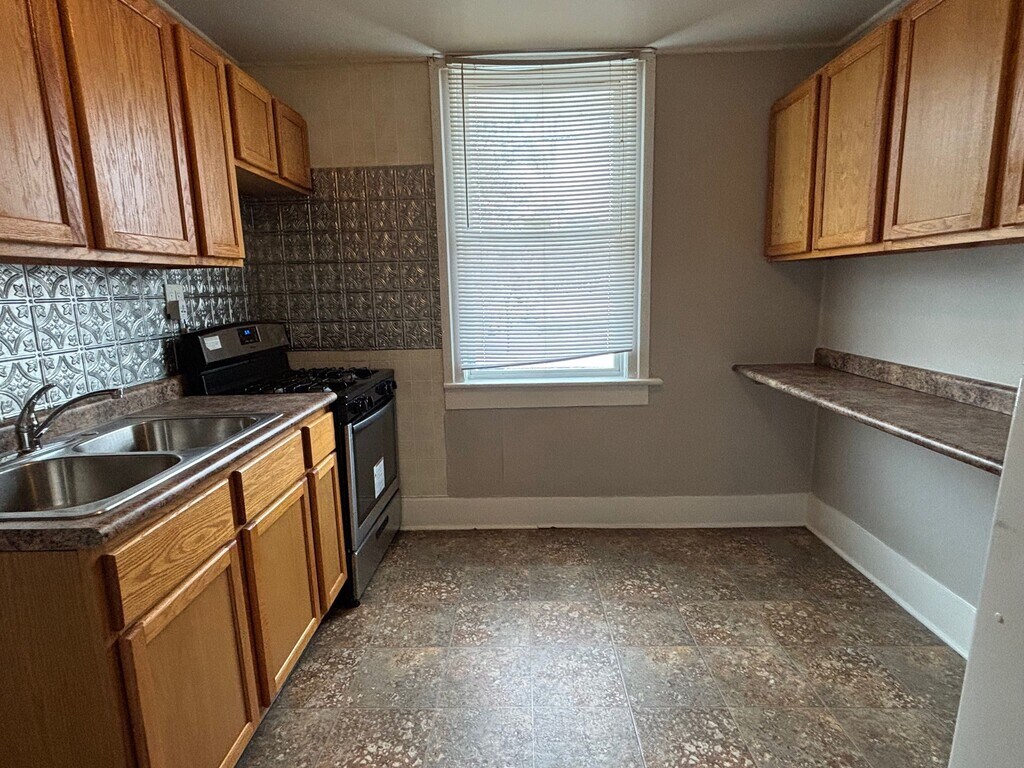 Well-Maintained Duplex Unit with Garage & Shared Basement This comfortable duplex unit offers a functional layout with neutral finishes throughout. The home features a spacious living area with plush carpeting and natural light, creating a warm and inviting atmosphere. The kitchen includes ample wood cabinetry, generous counter space, a gas range, and a stylish patterned tile backsplash. There is room for a small dining setup or additional storage along the built-in counter wall. The bathroom is clean and practical, featuring a tub/shower combo with built-in shelving, a vanity sink, and updated fixtures. Additional highlights include: Shared basement with washer and dryer Garbage, water/sewer and lawncare included in rent. Shared 2-car garage included in rent Neutral paint colors throughout Plenty of natural light Duplex setting with common areas Owner is a licensed real estate agent. A completed application is required prior to scheduling any showings.