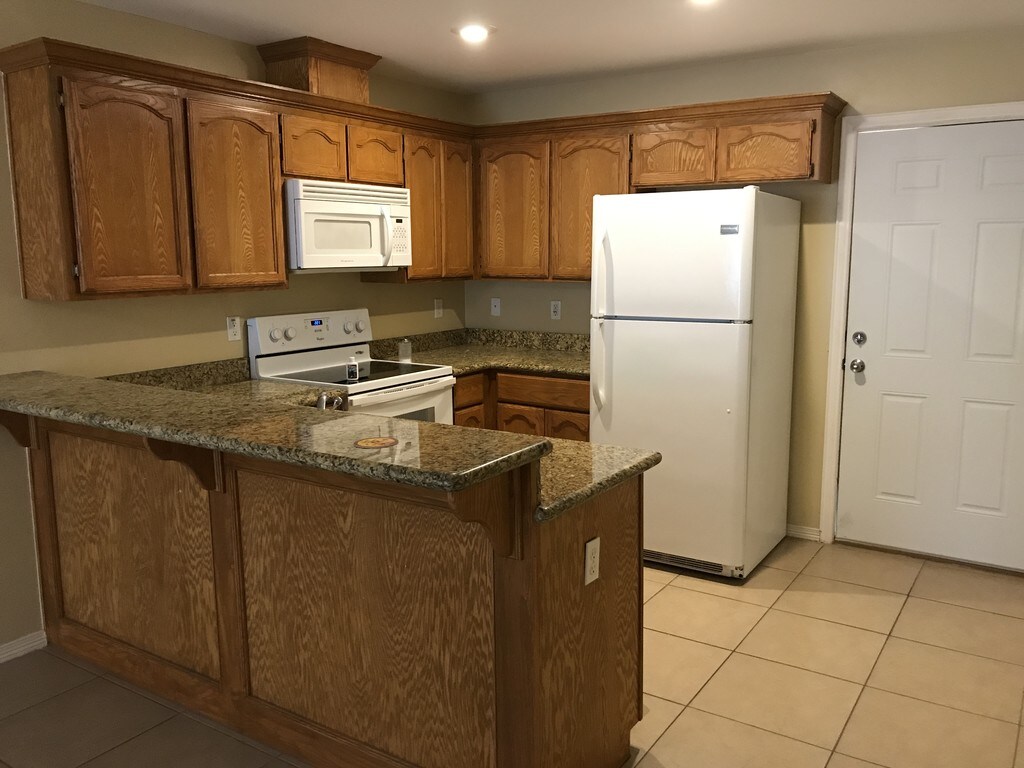 2 bedroom/ 2 bath apartment with tile throughout unit. Central AC and ceiling fans in every room. Granite counter tops in kitchen and bathrooms. Appliances include flat top stove, refrigerator, built-in microwave, and washer/dryer. The bedrooms have large closets with two racks to hang clothes plus shelves at end of closet. All windows have 2" faux wood blinds. The owner pays for utility lights, garbage, and grass sprinklers. Tenant pays for water and electric. Electric is Magic Valley which allows tenant to set up prepaid card so deposit not needed. Pets are negotiable with additional non-refundable deposit of $150/ small dog or cat. $250 for large dog. Deposit refunded if no damage to apartment at the end of the lease. No smoking of any kind allowed. Rent $850/month. One year lease. Credit/background check required on another platform. For $875/month will include water for two people.