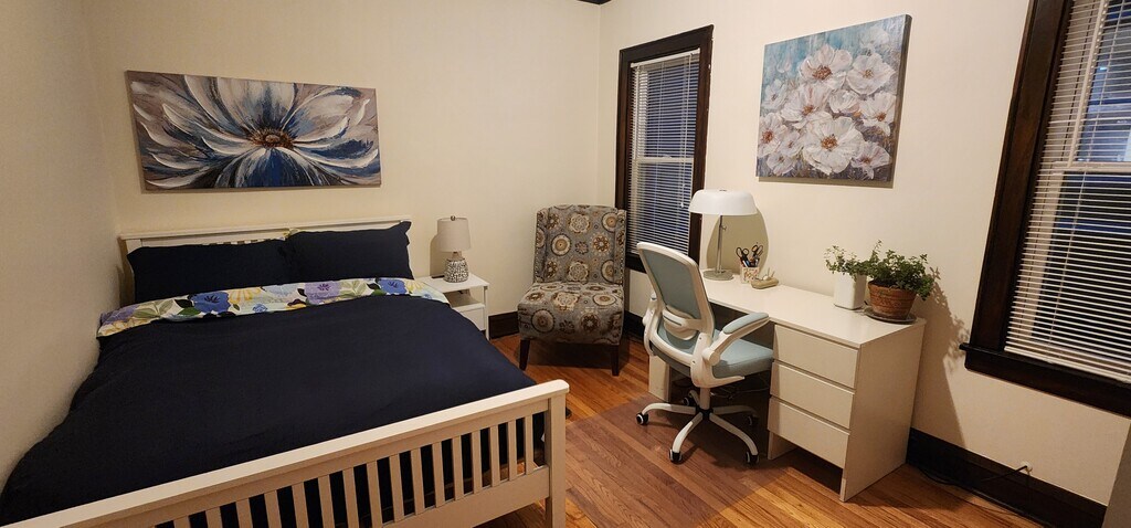 FURNISHED Evanston 2nd Floor Duplex – Spacious 3BR/2BTH, 1600 sq ft This spacious, sunny, second-floor walk-up is just under 2 miles from Northwestern University and directly across from Evanston Township High School. Featuring hardwood floors, large bright windows, and brand-new stainless-steel appliances, this space blends charm and convenience. Enjoy the comfort of central air and heat, a Nest thermostat, in-unit washer/dryer, and video doorbell security. Extra perks include ground-floor storage for bikes, strollers, or carts, plus a backyard with grill access. The neighborhood is peaceful and quiet, yet walkable to grocery stores, restaurants, and coffee shops. Transit is a breeze with bus lines within 2 blocks, trains less than a mile away, and a bike path right outside your door. Highlights: • Spacious 1600 sq ft layout with hardwood floors • In-unit washer & dryer + brand-new stainless steel appliances • Central air/heat, Nest thermostat, video doorbell • Backyard with grill & secure ground-level storage • Walk to shops, restaurants & transit connections Lease Details: • Pets considered case-by-case, fee is $50/mo per pet • No smoking indoors • Rent: $3,600/mo. • $600 non-refundable move-in fee • $3000 refundable security deposit • Includes water, trash/recycling, sewage, lawncare & snow removal • Tenant pays electric, gas & internet • Optional on-street residential parking permit: $150/year (included for one car if a one-year lease is signed) • One-year lease (renewable), available 2/1/26 • Application & background check ($50), excellent credit & rental history required