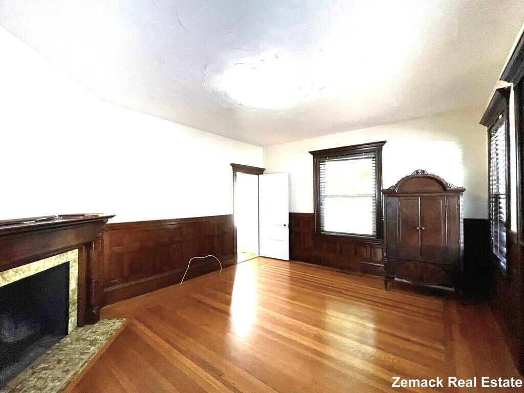 Beautiful and elegant first-floor unit in a charming three-family home. This spacious apartment features five large rooms, including two sun-filled bedrooms and a welcoming foyer with a walk-in closet. The bright living room boasts a decorative fireplace, built-in cabinet, and large updated windows that flood the space with natural light. The expansive eat-in kitchen showcases cherry cabinetry, a gas stove, and updated appliances. Hardwood floors run throughout, complemented by high ceilings. The unit also includes an updated bath and two additional walk-in closets in the second hall. Enjoy the comfort of a top-of-the-line gas heating system, professionally cleaned ductwork, and updated insulation. Direct access to the basement laundry room with a coin-operated washer and dryer. Outdoor amenities include a back porch and a fenced yard. Centrally located with easy access to the train, Whole Foods, restaurants, and main roads.