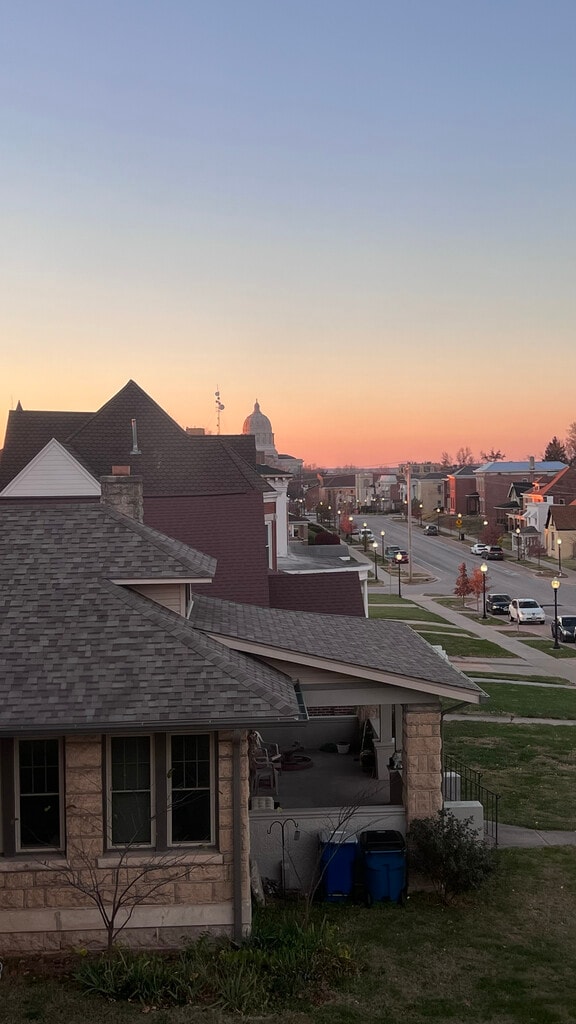 This exquisite red brick neo-classical mansion, built in 1903 with prison labor resides on the corner of historic Capitol Avenue and Lafayette Street in Jefferson City, Mo. Built by Lester S. Parker, this wonderful home became a social destination for many during the early 20th Century. In the late-1930's the home was converted into elite apartments for individuals conducting business within the State Capitol building and other corporations along the bustling streets of downtown Jefferson City. This 2nd floor apartment provides grand space and wonderful views of many of Jefferson City's wonderful landscapes. The spacious 380 sq. ft sunporch faces east of Lafayette street and the corner of Capitol Ave. From the large bedroom room bay windows see the beauty of the Marmaduke House across Lafayette Ave. and the historic Missouri State Penitentiary. A spacious kitchen provides space for the perfect meal. The family room, with 10-foot tall ceilings provides and ornament fireplace provides the perfect environment for relaxation. Parker's Place is located six blocks east of the Missouri State Capitol along historic Capitol Avenue and one block south of the Christopher S. Bond U.S. District Court House along Lafayette Street. Enjoy your stay at Parker’s Place, with all its intriguing stories, at the historic crossroads of Capitol Avenue and Lafayette Street in Missouri’s capital city.