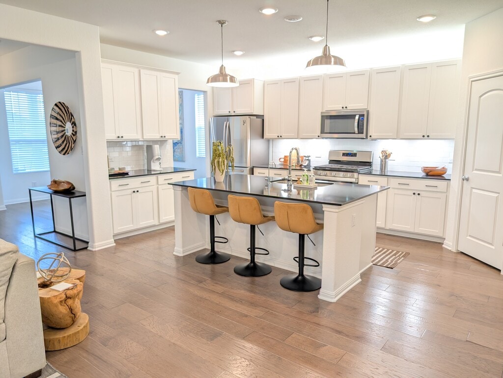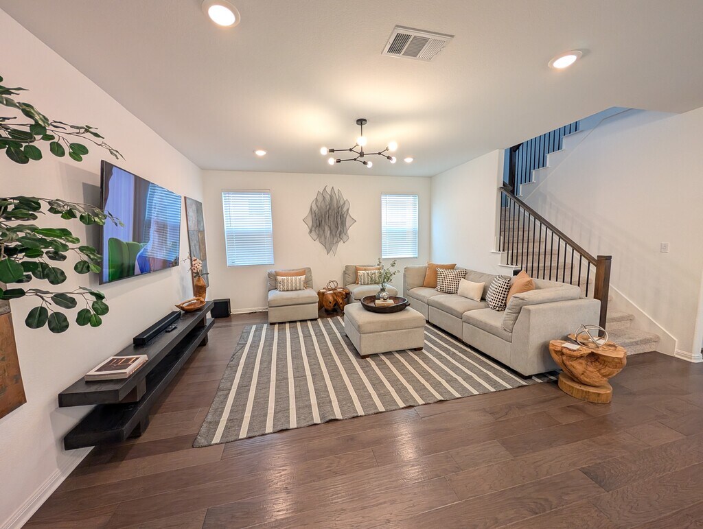 FALL IN LOVE with this move-in ready FURNISHED home! This beautifully designed home 3-bedroom, 3-bath, office/media space, 2-car garage offers a bright open floor plan. Located in Leander on a quiet street minutes from excellent schools, shopping, gyms, MetroRail and high-speed toll roads into AUSTIN. Leander is a vibrant Live-Work-Play master planned city consistently voted "The Best Places to Live", because it's the perfect blend of Texas Hill Country and hipsturbia. The Modern Farmhouse design perfectly blends Texas Hill Country living and beautiful interior spaces with its high ceilings, luxurious finishes, sleek new appliances including top-tier refrigerator/washer/dryer, attached EV-ready garage with smart phone-ready opener, and smart thermostat for comfort and efficiency! You'll enjoy the spacious front yard from your covered porch and 2nd story balcony shaded by a mature oak tree, and a fenced backyard with covered patio! You'll make lots of new friends in this vibrant family-oriented neighborhood! This is a REAL NEIGHBORHOOD! With wide streets, bike lanes, and no-thru-traffic, well lit with street lights and regulation home lighting so you are SAFE to be outside with your friends, day or night. Rear-facing garages mean everyone has relaxing PORCHES front yards designed to encourage neighbors to become friends, and real sidewalks for you to safely get to your playmates houses! Nearby there's too many fun things to do- like swimming in a beautiful Crystalline Lagoon, go to the gym, learn karate or riding horses! Too many fun food options, excellent 'No Bullies Allowed' public schools, private schools and Montessori, Play/Day Care, Gymboree, swim schools, martial arts, sports centers, tutors, equestrian centers, medical centers, services, churches/synagogue/mosques, and rapid transportation routes are nearby too! Did we mention the Crystalline Lagoon development nearby? Mocking Bird Park sub-division is NOT mega suburbia, it's the perfect place to call home! This NEW Home Offers: - SPACIOUS OPEN DESIGN. 3 Bedrooms, 3 Bathrooms, 2 car garage, plus a large Media/Game/Exercise room, and a spacious office/dining room. 2 porches on the front yard, fenced back yard.2 additional parking spaces in the private driveway plus lots of convenient on-street parking on this corner lot. - LOCATION! LOCATION ! LOCATION! Leander is a master planned community perfectly situated in the Texas Hill Country on the 'border with civilization', out in the countryside but minutes from everything and also within an easy commute via several high-speed toll roads and MetroRail that provide quick access to all parts of Austin, Pflugerville, Roundrock, including quick access to downtown, Oracle, Apple, Tesla, Boring Company, Samsung, Dell and more. You are out in the country, yet nearby markets and shopping from mom&pop stores to Costco; restaurants including top-rated Texas BBQ, fine dining and boujee wine bars; world-renowned medical centers, gyms, parks and all other services make your life easier! The lighted skate park is 1mi. away. The Tesla Charger is 3 miles with more coming. The Crystalline Lagoon is 4 mi BBQ - LIVE LIFE! PEACEFUL AND QUIET! A perfect corner lot on a quiet dead-end street. A spacious front yard with shade from a mature oak tree, a covered porch plus 2nd story balcony to relax on, and a fenced back yard with room to enjoy BBQ. Perfect for quiet enjoyment and entertaining! Mockingbird Park HOA rules are design for no parties, no noise, no drama. It's a master planned family-oriented neighborhood with no-thru-traffic, wide roads with bike lanes and sidewalks so you can safely ride their bikes, garages facing a back alley, and area parks, walking trails and schools all nearby. Close to many lakes, open-spaces, attractions, and entertainment, in the city of Leander literally voted BEST PLACES TO LIVE. The essence of what Texas has to offer. - PLAY! PLAY! PLAY! Boaters, jet-skiers, wake surfers, and sailors (YES - sailing in the heart of Texas is alive and well), enjoy nearby Lake Travis (the big one) via public shore access a short distance away! Equestrian centers are 2 miles away - YES you can learn to ride horses, you're in Texas! Enjoy the many hiking/running/biking Trails nearby. You are right in Texas Hill Country! The Crystalline Lagoon development is just 3 miles away. - MODERN FARMHOUSE design home with an open layout beautiful Energy Star rated appliances, LED lighting, sleek quartz counter tops, and hard wood cabinets enhance a modern home layout. - Engineered hardwood flooring on the main level is beautiful, easy to clean, and durable. Carpeted bedrooms are warm and comfortable. - High efficiency central AC and water heater lowers carbon footprint and energy bills, while keeping your family comfortable all year long! - Dual pane windows with Low E glass and 2" blinds throughout offer privacy, and additional energy and sound insulation. - Smart home-ready with WiFi enabled thermostat, water heater, and garage door opener. - 2 car Garage ready for your EV charger! Plus 2-spots in your private driveway and on-street parking out front and on your side street. - Data Fiber-ready for gigabit internet speed! - LED lighting throughout the home is color-matched to each room's function. It's Eco-conscious, cooler, and easier on the eyes. - Spacious bathrooms with twin vanities in master bath, rainfall shower heads, walk-in closets, and plenty of storage throughout. - LEARN AND GROW! Leander schools are some of the best in Texas. Leander ISD They offer excellent fiscal accountability, facilities, teachers, community involvement, and even Adult Learning classes! Danielson Middle School and Glenn High School are less than 1/2 mile away -you can ride a bike to school! Several elementary schools are ~1 mile away. Leander schools have great online reviews for their excellent and caring teachers and anti-bullying and anti-vaping policies. Many colleges are nearby including Austin Community Colleg