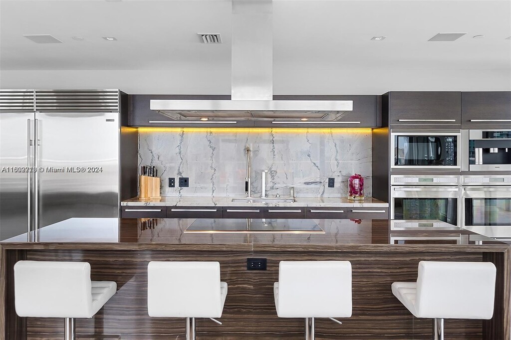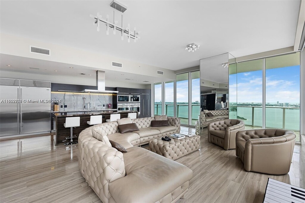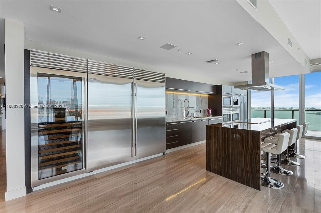 An absolute one-of-a-kind designer Penthouse perched over Biscayne Bay with sweeping 270-degree views from the Miami Beach shoreline to the downtown skyline; from Coconut Grove to the Hard Rock. This glass jewel box stands alone. with 2,700 sqft of interior space and over 2,500 sqft of sprawling terrace directly off your great room, it is a unicorn that is seldom seen. Imagine the beauty of opening your glass sliders to an immense outdoor living space replete with a jacuzzi hot tub and outdoor kitchen. A home in the sky filled with designer finishes, a spectacular glass primary bath, oversized walk-in closets, and a gorgeous chef's kitchen and entertainment island. It's one of those spaces that must be experienced in person to be believed!