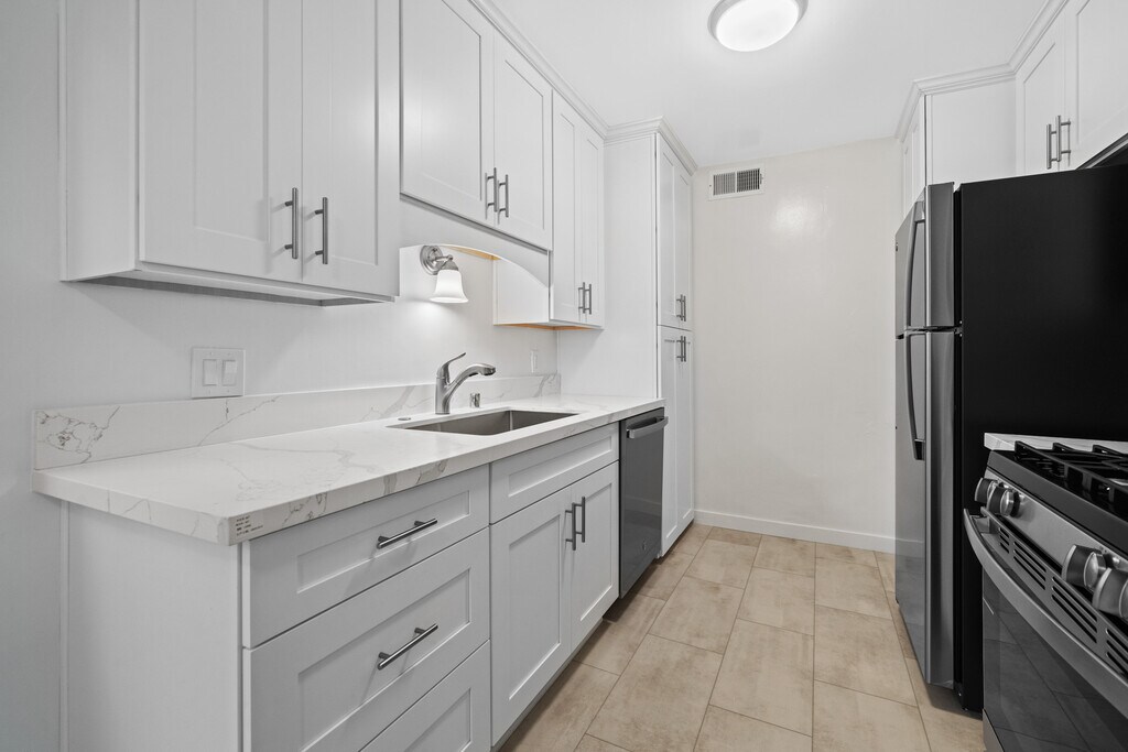 Modern, bright, spacious, and newly renovated 2 Bedroom/2 Bathroom unit in prime Los Feliz with central heating. Fantastic location one block from Hillhurst and Vermont. Living spaces feature new flooring, light fixtures, window treatments, and double pane windows. New sliding glass doors off the living room lead to a private patio. The kitchen is brand new and features custom white wood cabinetry, white quartz countertops and backsplash, modern hardware, a full set of stainless-steel appliances, and lots of room for storage. Separate dining area off the kitchen. Bedrooms are spacious and have huge closets with sliding mirrored doors. The primary bedroom has an en suite bathroom with the new vanity separate from the shower stall that has a new glass shower door. The other bathroom also has a brand-new vanity but has a tile shower/tub combo with new glass shower doors. The unit comes with 1 parking space and communal laundry. The property is located centrally in Los Feliz near all the trendy shops, restaurants, and entertainment. Short drive to Hollywood, Silver Lake, and Downtown LA. Enjoy a modern living experience in a newly renovated home!