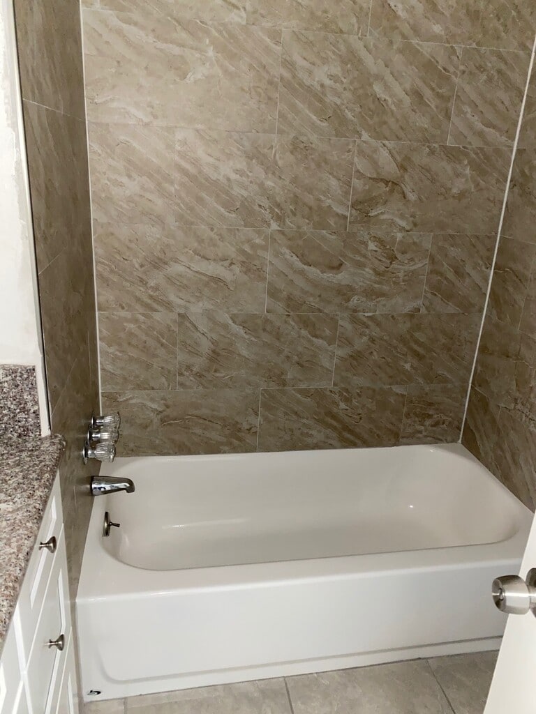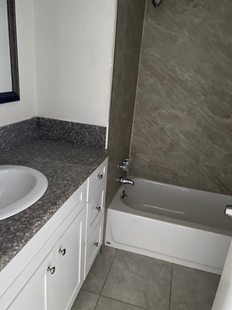 Modern and Elegantly Remodeled First Floor 1 Bedroom Featuring Modern Tile Flooring Throughout New Kitchen Cabinets With Granite Counters New Appliances Breakfast Bar Gas Fireplace Spacious Bedroom Built in Double Closet New Tub