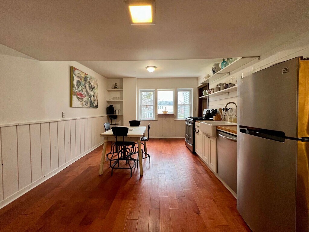Front duplex apartment of a charming 2 family on a quiet street. This apartment comes fully furnished. We set it up as an Airbnb so it's ready to be lived in. There are 2 bedrooms with Queen beds and one bedroom with a full and twin bed. The 2 full baths are on the second level. There is a shared laundry and basement area and parking for 2 cars in front of the house. For a $50 reduction in rent for shoveling snow for the months of Nov-April if tenant is willing to take on the task. Pets considered.