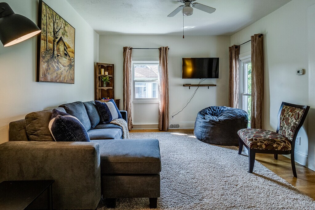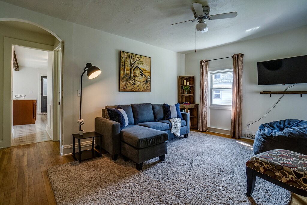 Welcome to the East Main Flat! This stylish upstairs apartment is a wonderful central space for you to enjoy all the Finger Lakes has to offer. Within easy walking distance to downtown and the Outlet Trail, you'll be able to experience Penn Yan to the fullest. The apartment is fully furnished, and will also include a storage bay in the barn. Tenant will handle utilities (electric, water, sewer, and gas). Owner will provide lawn care, snow removal, wifi, and garbage removal. No smoking allowed. It includes two bedrooms, and one full bathroom, along with a large kitchen and living room. The laundry room is shared with the downstairs tenant. There are two separate entrances/exits, and two parking spaces are available.