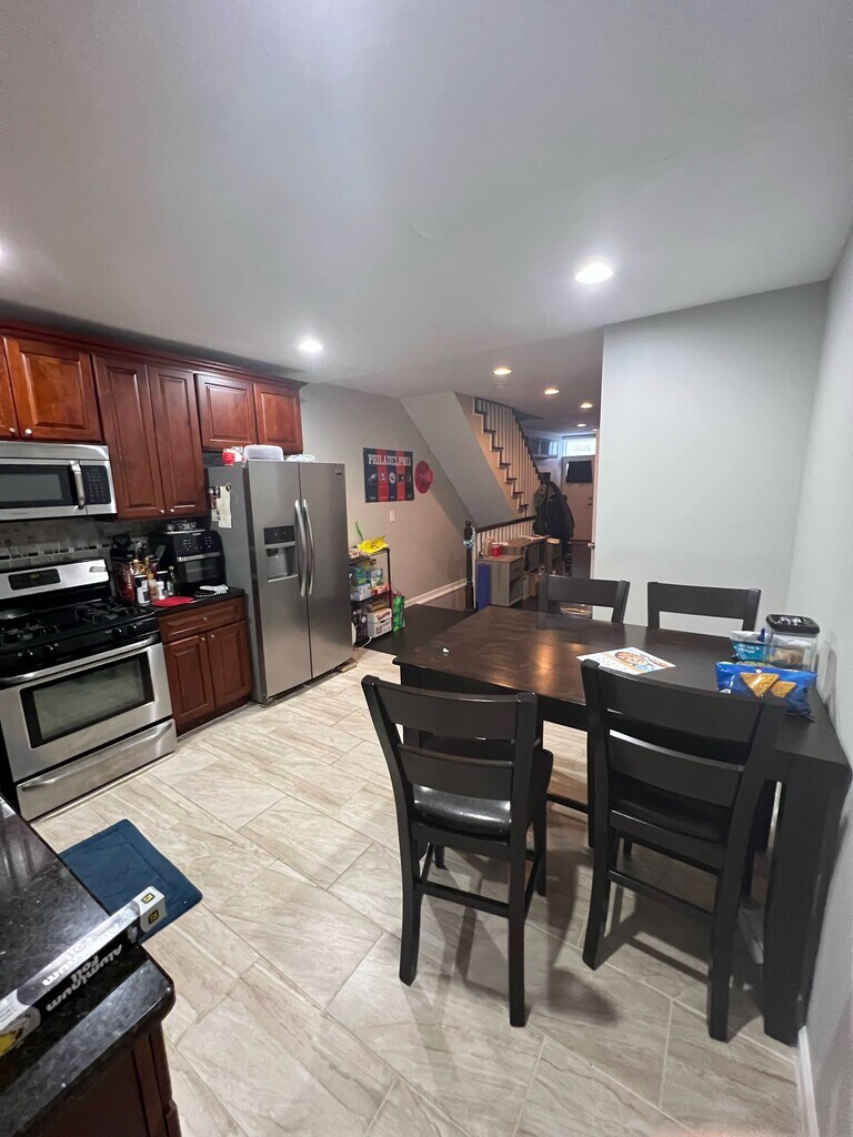 Great Location on a quiet street in Point Breeze. You will have 3 bedrooms and 1.5 baths, with the convenient half bath located on the first floor. Basement is finished and where the laundry is located. House also comes with a outdoor patio perfect for a BBQ. First bedroom fits a queen bed comfortably along with a desk. Back bedroom has beautiful built ins and fits a queen as well. Third room is perfect for a home office or a day bed. First floor is open concept as soon as you open the front door. Come make this your home today. Rent does not include utilities.