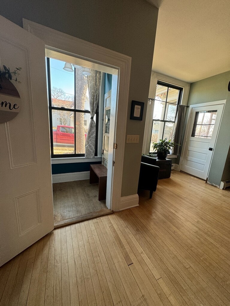Vintage with Stillwater charm. Main floor apartment in a 4 unit home. Private side entry. 4 blocks to downtown, quiet neighborhood, large yard with green grass. Two driveway parking spots included. No dogs. Cats ok with additional fees. 2 bedroom with an egress window in the basement, large bright kitchen and living room with 9’ tall ceilings and tall East facing windows. Original wide trim, new Renewal by Andersen windows, in unit washer and dryer. Original hardwood floors throughout much of unit. At least one window on every direction for great light, tall ceilings. There is plenty of storage in the basement. Open to discuss lowering rent for lawn and snow care.