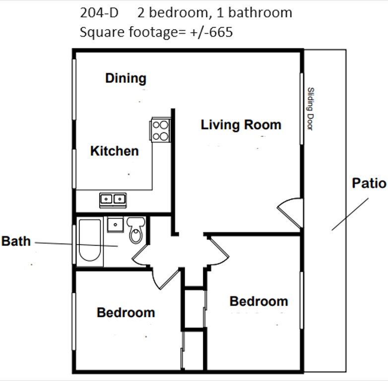 Apartment Unit: DApartment Model: D - 204 E Broadway$2,2002 Bedroom, 1 Bath, 665 sq ftAvailable Now![]()