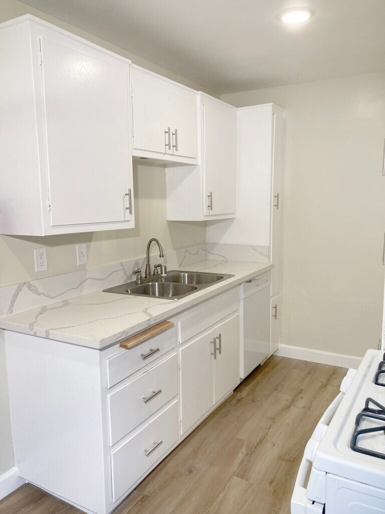 NEW QUARTZ COUNTERTOOPS! NEW VANITY! NEW LIGHTS! NEW SINKS! NEW FAUCETS! NEW LUXURY VINYL PLANK FLOORS! Why not live in an apartment that has a world full of charm and character, but on the inside is fully renovated? On the outside, you will find a beautifully designed craftsman style architecture. A large, lush courtyard and a grand staircase highlight the appearance. Inside you will find a darling one bedroom apartment, including a dishwasher range hood gas stove/oven fresh paint on all walls air conditioning gas heating garbage disposal. The hardwood floors, bathroom vanity, recessed lights, and the countertops are all brand new. My name is Brian and I can show it to you at any reasonable hour.
