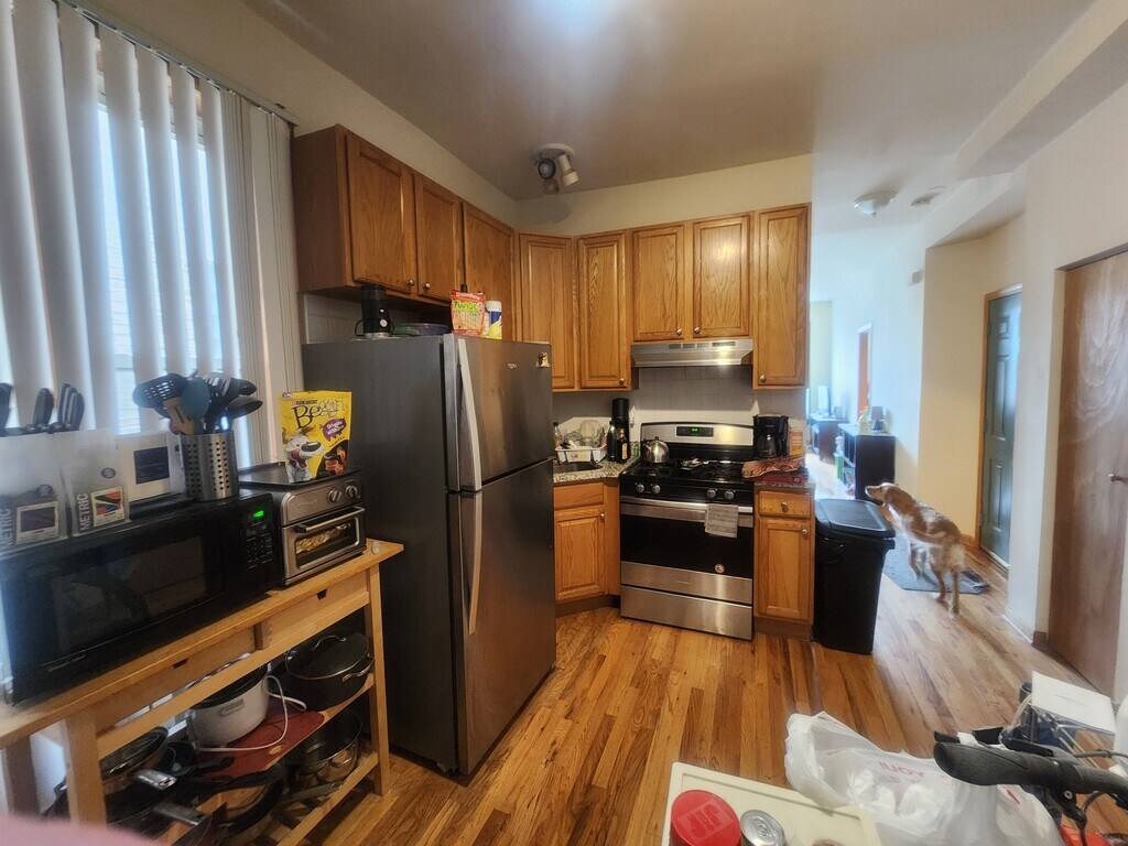 **no dishwasher** **quick walk to the Western ave blue line** -Available May 1st -No security deposit, just a flat $500 move in fee -60lbs weight limit for a dog -extra $300 move in fee for a pet -Either 2 cat or one dog allowed maximum -No agressive breeds -tenants pay gas and electric -renters insurance required **square footage is roughly estimated and not guaranteed to be accurate**