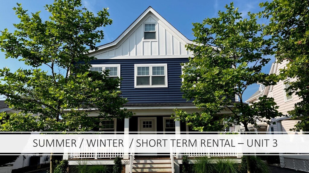 SUMMER 2026 (Call for availability and rates) WINTER $3,750 MO 9/20/25 THRU 5/16/26 ANNUAL $6,150 MO 9/20/25 THRU 9/19/26 Where Sun and a Lil' Hangover Are Success Metrics A luxurious and modern home away from home. This newly constructed and fully furnished rental apartment is immaculate and a must see. Located 1.5 blocks from the beach. The unit is spacious 3 bedrooms, 1 office (sleeps 7), 2 baths., floor plan includes a family room, fireplace, dining area, and a fully stocked gourmet kitchen (coffee machine, toaster, pots, pans.), 3- 3 x 4 roof windows with views of the ocean. Unit is half of the second floor and the entire third floor of main house. Private rear deck and fully landscaped yard, patio, grill and outdoor refrigerator, outdoor shower, and plenty of seating. Rental is complete with amenities (bed linens, towels, and more). There is an ice machine in the basement for your use, as well as a full-sized washer and dryer. The property is fully landscaped with a sprinkler system and low voltage night lighting. Pet friendly (Pet towels and blankets) We provide a free early check in amenity we try to get all our guests on the beach by 11 a.m. The host will work with you as you get closer to your arrival date. Parking spot. Unit has 500 HD channels and a 1G WIFI service. (Verizon Fios) Unit includes bed linens and bath towels. Plenty of board games for big and small. Beach goodness - 4 beach badges, towels, chairs, umbrellas, toys, and cart. The only item shared with the other unit is the entrance to the basement (washer dryer location). We painstakingly designed the units to be separated. NJ Pet Allergen Disclosure A-4446. This property is pet friendly and pets (dogs and / or cats) are regularly present on this property.