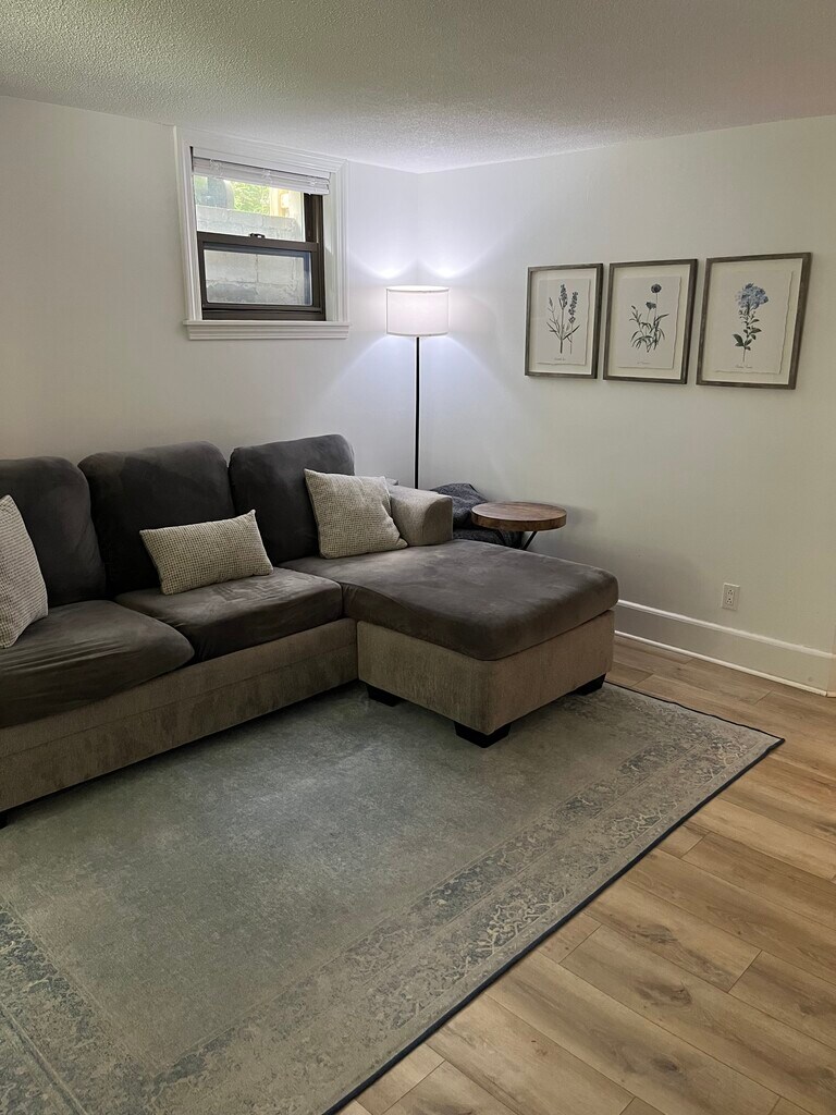 Recently remodeled (three years ago) apt within well maintained three family home. Owner lives on the property, thus the property is and will continue to be well cared for. Very nice condo style one bedroom apt on basement level. Luxury vinyl plank throughout excluding bathroom (porcelain time in bathroom). Kitchen includes all stainless steel appliances (french door refrigerator, over the range microwave, gas range and dishwasher). The bedroom includes large closet with built-in organizers. Stacked laundry machines are located off the bathroom. The apartment is heated with forced hot water by gas fueled system. Parking is on street only. A minimum one year lease is required. The monthly rent is $2095.00 plus utilities. A security deposit of $2095 is required. To qualify: Good credit (minimum FICO score of 670) and income of 3X rental amount (thus minimum annual house hold income of $75k). Small pets may be considered.