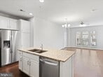 Open for viewing Sunday Nov 9th from 2p to 4p. End unit 2 level townhouse features attached one-car garage, and lovely interior with open floor plan. 9" Ceilings, 42" kitchen cabinets, gas cooking, stainless appliances, ample counter space are ideal for the gourmet cook. Upgraded hardwood flooring on main level, with a powder room for convenience. Upstairs features 3 spacious bedrooms, two full baths, and washer/dryer. Primary has large walk-in shower, walk-in closet. Walk to Ashburn's Goose Creek Village with over 30 shops and restaurants. Easy commute to Dulles Airport, and close to Metro.