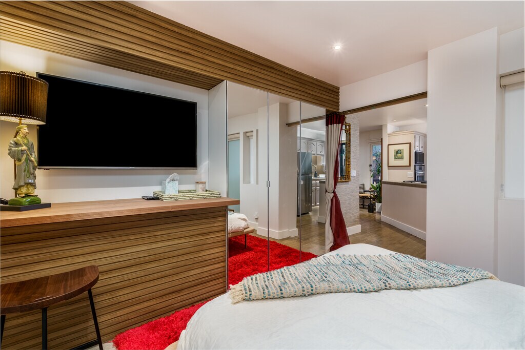 Located in the historic enclave of Hollywood Heights, this fully furnished designer residence offers a rare opportunity to lease a boutique-style home blending architectural character with contemporary luxury. Approximately 1,400 square feet of curated interiors are complemented by over 1,500 square feet of landscaped outdoor space shared only with the owner, providing an exceptional balance of privacy, comfort, and sophistication in one of Los Angeles' most desirable hillside neighborhoods.The interior features gallery-inspired design with grasscloth walls, layered textures, custom wood detailing, and curated artwork throughout. Open living and dining spaces flow seamlessly, offering strong sightlines and an intentional, livable layout. The primary suite serves as a serene retreat, while a flexible second bedroom works well as either a guest room or private office.The kitchen is equipped with double ovens, a gas cooktop, and brass-accented fixtures. The spa-inspired bathroom includes contemporary tilework, a floating vanity, LED-lit mirrors, and a Toto bidet toilet, elevating everyday routines.Outdoor living is a standout feature, with a private backyard and expansive entertaining deck featuring sculptural landscaping, premium Manutti daybeds, and programmable LED lighting. Smart Philips Hue lighting, included utilities and high-speed internet, a Samsung washer-dryer combo, optional biweekly housekeeping, and permit parking add convenience. Minutes from Runyon Canyon, the Sunset Strip, and major studios.