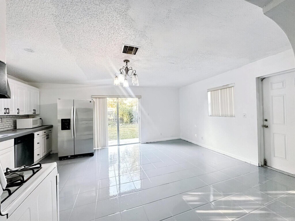 Move-in ready 3-bedroom, 2-bath home featuring a spacious open floor plan, updated kitchen and bathrooms, and tile flooring throughout for easy maintenance. Home offers an eat-in kitchen and a large fenced backyard with mature fruit trees and plenty of outdoor space. Additional features include a separate laundry room and covered carport parking. Conveniently located near shopping, dining, and major highways with easy access to downtown West Palm Beach. No HOA fast approval available for immediate occupancy.