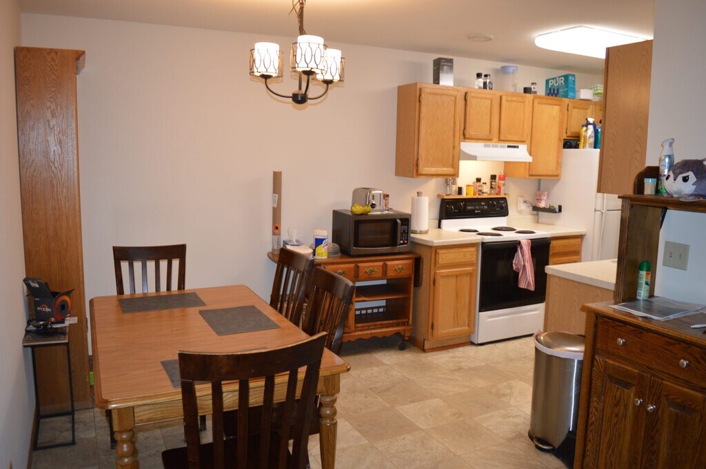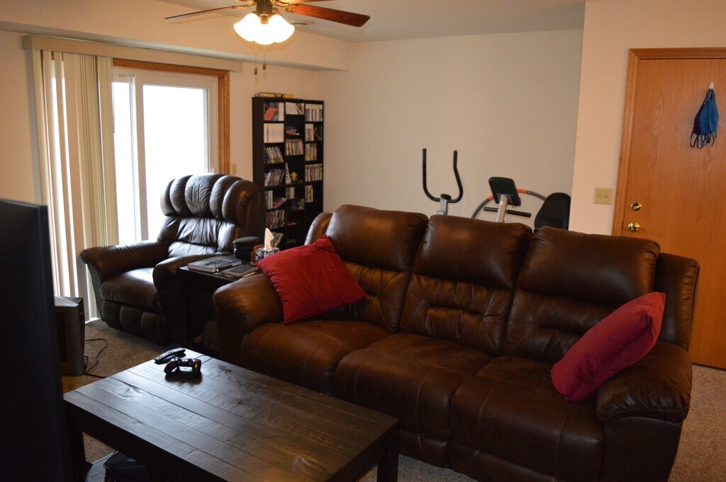 Rent this 2 bedroom main floor apartment in Cottage Grove! This unit opens with a living room featuring a corner gas fireplace and sliding doors leading to a patio and backyard. The living room flows into the dining area and kitchen. Access to the two car garage is off the fully equipped kitchen. Two bedrooms, a full bathroom and laundry facilities are located down the hallway from the living area. Outside, the unit has an attached 2 car garage and patio. 2 Car Garage Central Air Dishwasher Gas Fireplace Lawn Care Provided Professionally Managed Snow Removal Provided Washer and Dryer