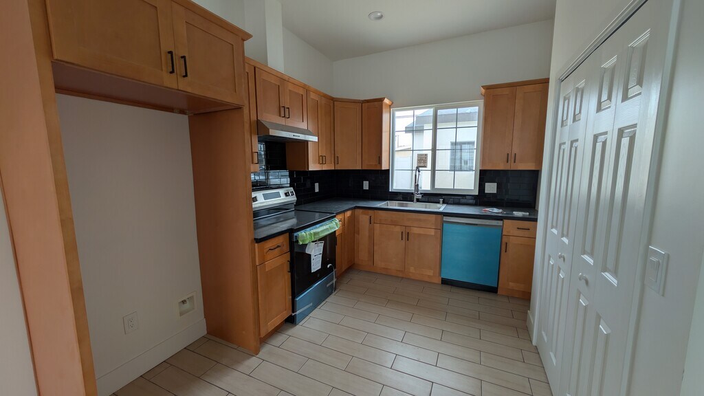 Brand new construction 2-bedroom home with high ceilings and modern finishes throughout. This freshly built unit features new paint, new insulation, and energy-efficient double-pane windows. Enjoy a bright open layout with a brand new kitchen and fully updated restroom, complete with new stove, dishwasher, and washer/dryer hookups. Equipped with a ductless A/C unit for efficient cooling. The property includes a private front yard space, tandem 2-car parking, and a dedicated 220V outlet for EV charging. Tenant pays trash, electricity, and water. Available now. Video tour and in-person tour provided upon application submission.