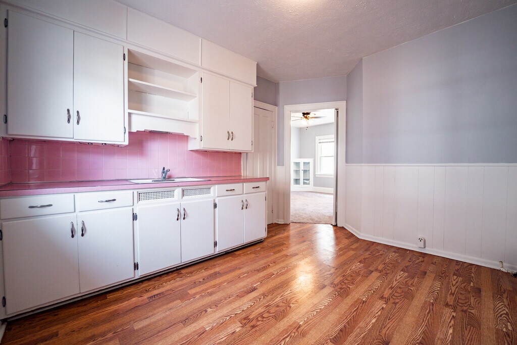 Impressive downstairs unit on quiet street in Lakewood. This spacious 2-bedroom, 1-bath home offers over 1,000 square feet of comfortable living space & is available for immediate occupancy. Enjoy refinished hardwood floors throughout (2025), updated lighting (2025), fresh neutral paint (2025) and plenty of natural light. The remodeled kitchen (2025) features a large pantry, abundant cabinet space and tasteful finishes. The bright and roomy dining room flaunts gorgeous built-ins & opens to a cozy family room with a brick fireplace. Just off the hallway, two generously sized bedrooms offer comfort and privacy, while newer carpet and windows throughout (2020) enhance energy efficiency. The full bath (2020) adds a fresh, contemporary touch while the original trim preserves the home’s timeless charm. One space in a two-car garage is reserved for this unit, with additional parking available in the driveway or on street. Each unit has its own washer and dryer in the shared basement, with extra storage available in both the basement and third-story walk-up. The inviting backyard is shared with upstairs unit. No smoking allowed in unit or house. Dogs & cats welcome with additional monthly fee of $50/month per dog and $25/month per cat.
