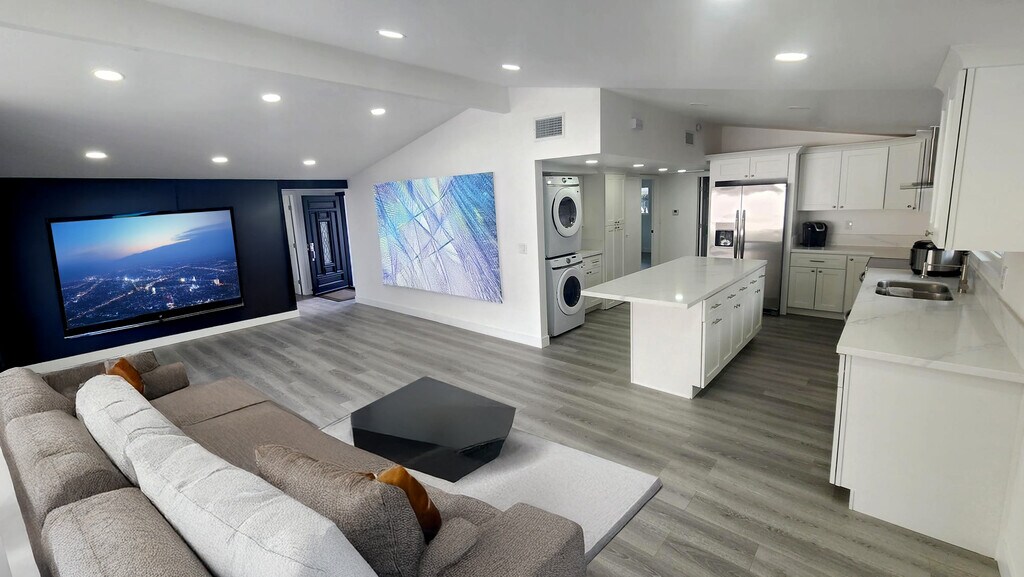 Welcome to 20851 Jan St., a COMPLETELY and masterfully remodeled gem from the studs up, nestled in the serene neighborhood of Winnetka, CA. This stunning almost 10,000 square foot property seamlessly blends modern luxury with functional elegance, offering an exceptional living experience in a VERY private and quiet cul-de-sac setting. Step inside and be greeted by an open-concept floor plan that exudes modernism and sophistication. The expansive living area is highlighted by beautiful grey wood color laminate flooring and an abundance of natural light, creating an inviting atmosphere perfect for both relaxation and entertaining. The centerpiece of the home is the large, gourmet kitchen, which features a generous island, quartz countertops, shaker cabinets, and top-of-the-line stainless steel Samsung appliances. Whether you're a culinary enthusiast or love hosting gatherings, this kitchen is sure to impress. This thoughtfully designed home boasts four spacious bedrooms and four full bathrooms. Each bathroom is appointed with high-end finishes, ensuring a spa-like experience at home. The BRAND NEW HVAC unit, upgraded electric panel, New 50 gal. Rheem water heater, and ALL NEW copper plumbing provide peace of mind with modern, efficient systems. Outside, the property offers a spacious yard with drought-tolerant landscaping, ideal for those seeking low-maintenance beauty and sustainability. The yard features numerous succulents of various styles and shapes lined with solar charged lights throughout and an adult tangerine tree. The large driveway and attached garage provide ample parking and storage. This home is truly an entertainer's dream, combining private, tranquil living with the convenience of a central location. Don't miss this opportunity to live a meticulously remodeled property with unparalleled features and potential that is within walking distance of Pierce College and biking distance to Westfield Topanga Mall & Village, Kaiser Hospital and the LA Rams training field! APPLICATION REQUIREMENTS: • Each adult must submit a background/credit check via SmartMove® by TransUnion® • PHOTO ID REQUIRED FOR EACH APPLICANT (DRIVERS LISCENCE OR PASSPORT) • 2 MONTH OF PAYSTUBS AND PROVIDE EMPLOYERS H.R. CONTACT INFO. • PREVIOUS RENT MUST BE UP TO DATE AND AND NOT DELIQUINT AND PROVIDE PROOF/LANDLORDS INFO. • PROOF OF RENTERS INSURANCE ($100,000 PERSONAL LIABILITY) DUE UPON MOVE IN.