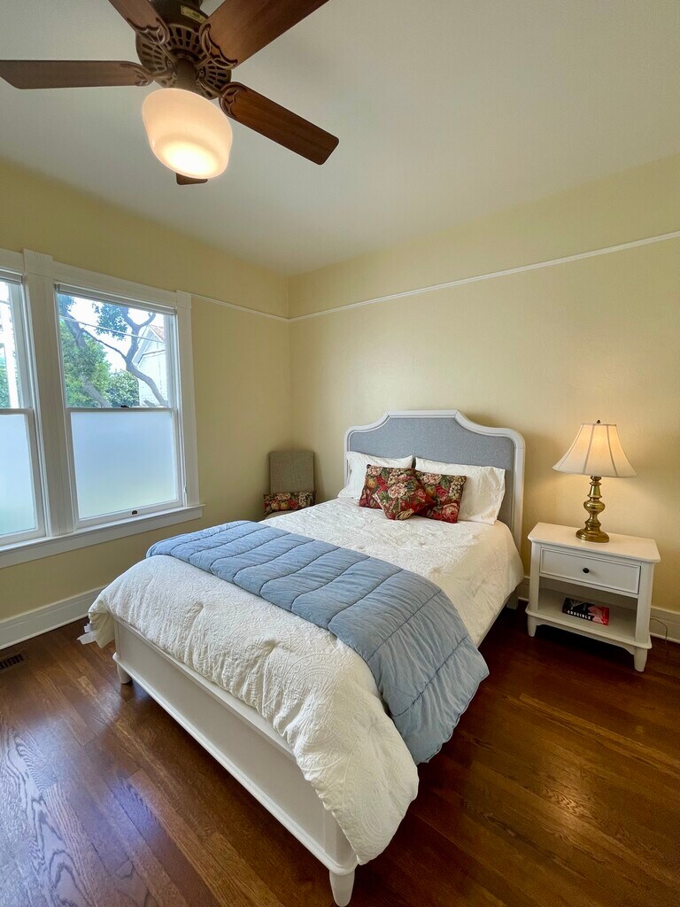 This lovingly restored and fully modern 8-room single level historic home is perched above street level and is situated on a double lot. It features a lovely private garden and patio area. It is listed as unfurnished but can be rented as furnished for $5500/month. This special house is on Pacific Grove's historic home registry. Original features have been maintained and restored including high ceilings, stained glass windows, period fixtures and moldings, and beautiful walnut-trimmed hardwood floors. There are 3 generous-sized bedrooms, plenty of closet space and 2 completely renovated full bathrooms featuring Italian porcelain tile. The master bedroom has built-in cabinets, TV wall-mount, stained glass windows that open to catch coastal breezes and a skylight. The large, sunny front room has tall bay windows and can be used as a bedroom, office, or family room. The living room has a wall-mounted 65" HDTV and features floor-to-ceiling windows overlooking the garden. Overhead ceiling fans maximize air flow throughout the space and the Nest thermostat helps fine-tune your comfort and saves energy. The kitchen has granite countertops, stainless steel Whirlpool appliances (range, refrigerator, built-in microwave and dishwasher). There is an inside laundry area with brand new full-size LG steam washer and dryer. The landscaped exterior space is fully irrigated and includes a wooden deck and brick patio off of the kitchen. There's an outdoor propane heater and wood-burning fire pit to enjoy on chilly nights. Please note that the yard is fenced on 3 sides. The home is located on a quiet, friendly street in the heart of Pacific Grove steps away from Lighthouse Avenue, the town's main thoroughfare. Ample street parking is available; no permit is required. You're steps away from gourmet restaurants, art galleries, boutiques, coffee shops, bookstores, and more. And just a few short blocks to the ocean, Lovers Point, the Coastal Recreation Trail, Museum of Natural History, weekly farmer's market, the post office, new library and town cinema. Highly-rated Robert Down Elementary School and Pacific Grove Middle School are within walking distance while The Defense Language Institute, Naval Postgraduate School and Presidio are a bike ride away. By car, it's 5 minutes to the Monterey Aquarium and Cannery Row, 10 minutes to downtown Monterey or Carmel-by-the-Sea, and 15 minutes to Pebble Beach golfing and fine dining. Monthly gardener and sewer included. Active duty military are encouraged to apply. **In-person tours will only be scheduled upon receipt of completed rental application from adults in household 18 years or older.**