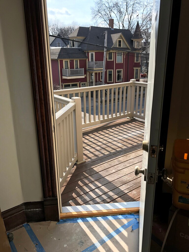 2 nd floor flat , newly updated kitchen & bath , right on the bus line & new bike path , great south facing deck , new furnace , office nook , central air no on-site parking