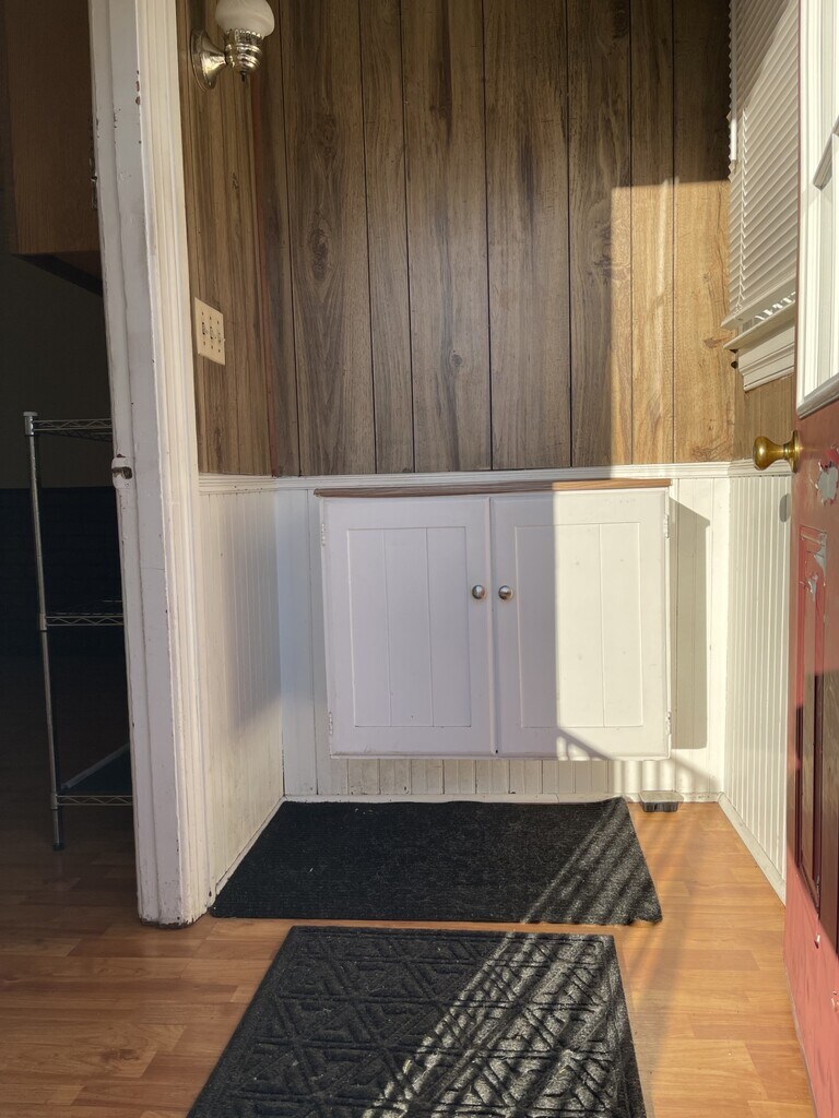This apartment is located on Allen Avenue in Pawtucket. Allen is only 2 streets away from I-95, so this location is ideal. Not on top of the highway's noise, but close enough to be insanely convenient. This is a first floor corner unit. Exit your apartment, and your car is literally right there - safe & convenient. You pay electric and heat. As you enter the apartment you are in a small vestibule / coat room. Brightly lit - perfect spot to kick off your shoes - and coat. Then you enter the kitchen. This is a square style traditional kitchen. Cooking is with Gas, as is heat. This is a very inviting space. From the kitchen you have an access door to a great bathroom to the right, and if you exit to the left you pass the stack washer and dryer to the Right. Crazy convenient - a hidden gem you will appreciate. Then you enter a large, oblong room. It's your living room/bedroom. It's that large. Or, as they say nowadays... HUUUUGGGEEE From the far side of the room, you also have access to the bathroom. The bathroom, as you can see is well designed, and recently updated.