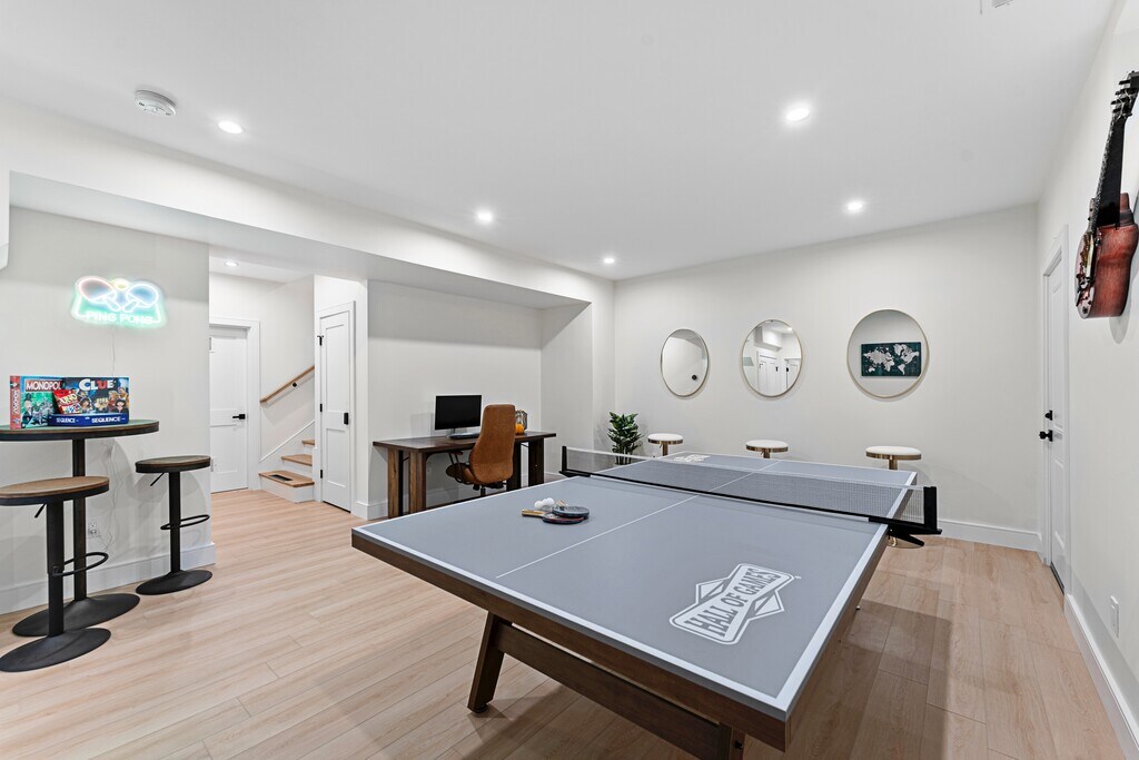 Luxurious and Furnished 6 Bedroom 5.5 Bath Villa, 4300+ sq.ft newly constructed villa 20 mins from Boston. The state-of-the-art kitchen features high-end appliances, sleek quartz countertops, a large center island, and everything you need to prepare gourmet meals. Bedrooms: 6 designed bedrooms, offering plush bedding and multiple en-suite bathrooms ensure privacy and convenience, featuring modern fixtures and a spa-like atmosphere. Game Room & Entertainment: Equipped with a ping pong table, projector movie theatre, board games and classic arcade games. Private outdoor space featuring a cozy fire pit, ideal for evening gatherings under the stars. Location: Minutes from Waltham’s downtown, offering easy access to restaurants, cafes, shops, and the Charles Riverwalk. Boston and nearby universities are just a short drive or train ride away, making this the perfect base for exploring all that the region has to offer. 5 mins walking to Moody street (multiple restaurants including Dunkin, Common Good coffee, Solea Tapas, Peppinos Dosa and many others) 20 mins drive Boston Downtown 15 mins walk or 3 min drive to train station MBTA 5 mins to Brandeis University 20 mins to Havard University/Cambridge Amenities: State of the art new construction Heated garage for easy parking and comfort during winter months Smart home technology with 4 -zone climate control for customized comfort (each floor can set their own temperature) High-speed Wi-Fi for work or streaming In-unit washer and dryer for your convenience Game room: Ping pong, arcade, board games, projector movie theatre
