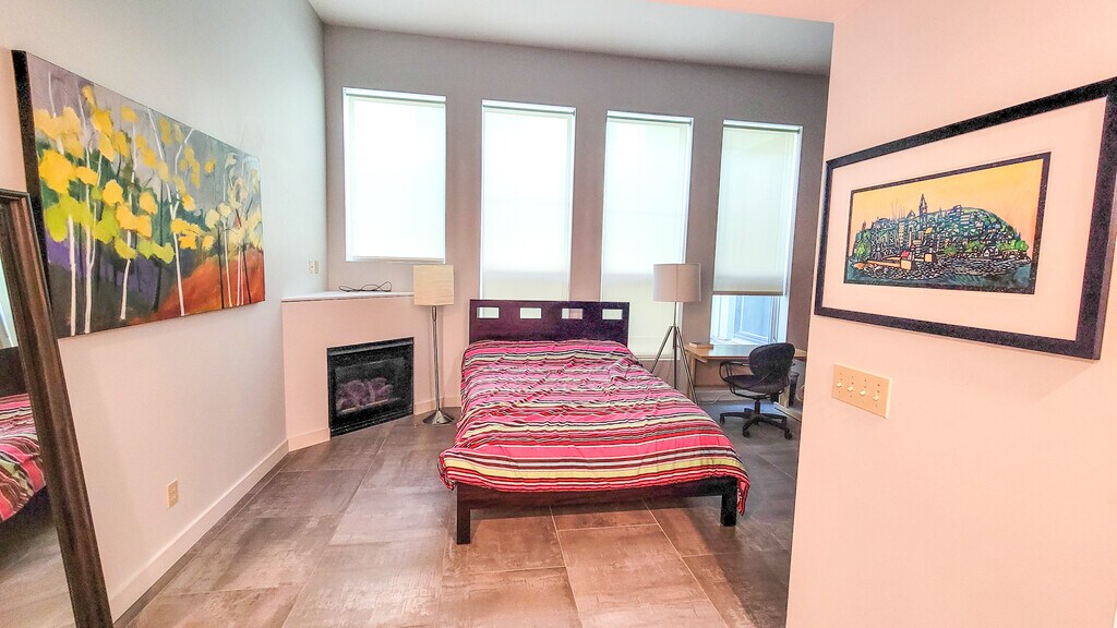 The Crescent Building Apartment offers a unique and luxurious living experience in the heart of Downtown Duluth. Situated on the second floor of the historic Crescent Building, this modern apartment provides breathtaking views of the majestic Lake Superior and the iconic Aerial Lift Bridge. From the large picture windows, residents can watch the bridge rise up throughout the day, allowing tall ships to glide elegantly underneath into the Duluth Harbor. The prime location places residents just steps away from the DECC and the shops, restaurants, and nightlife of the popular Canal Park district. Venturing outside, one can stroll along the scenic Lakewalk path and watch the ships come into port. Inside, the fully-furnished apartment features stylish, contemporary decor with an open concept living and dining area perfect for entertaining. The kitchen comes equipped with stainless steel appliances, a gas cooktop, and granite countertops. The apartment also boasts two cozy fireplaces, adding warmth and charm to the space. Additional Features: Fully Furnished In-Unit Laundry Controlled Access Air Conditioning Two Fireplaces Gas Cooktop Dishwasher Microwave Water, Sewer, Trash, & Electric Included The Crescent Building Apartment offers an unforgettable home base for experiencing all this vibrant waterfront city has to offer, combining comfort, style, and convenience in one exceptional package.