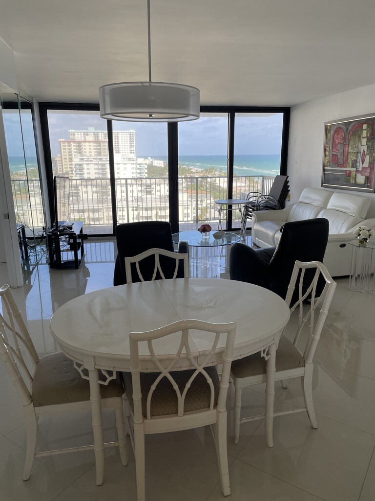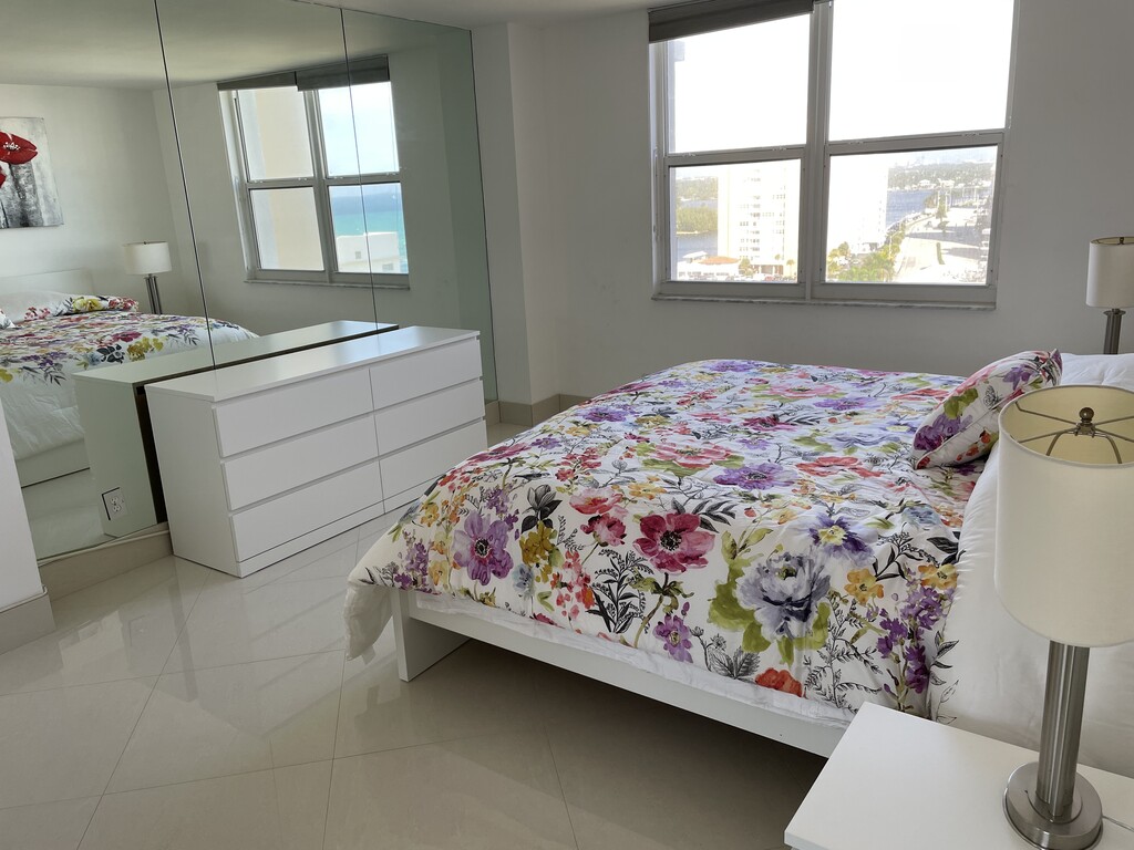 Directly on the beach. No need to cross any streets. Walking distance to the famous Hollywood boardwalk. Beach chairs and umbrella service included. 2 pools, 2 gyms and a restaurant on-site Aqua gym , Zumba and yoga classes included in rent 2 bedrooms and 2 bathrooms can accommodate up to 4 people. Electricity not included in rent. Laundry machines on each floor. No pets allowed in building. Minimum rental period is 4 months