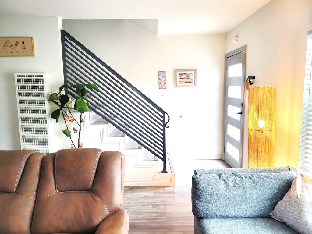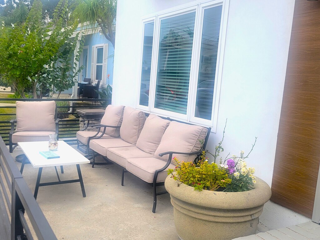 This beautifully remodeled 2-bedroom, 1 1/2-bath townhouse style unit offers approximately 1,250 sq ft of stylish living space, perfect for those seeking both comfort and convenience. The home is fully furnished and tastefully decorated, featuring modern laminate flooring throughout and ceiling fans in each bedroom for optimal comfort. Enjoy the convenience of an interior stackable washer & dryer and relax in your private, enclosed front patio—perfect for enjoying the outdoors in peace. For added convenience, the property includes one garage space with an electric vehicle outlet. Located just 1/2 a block from the Electric Avenue Greenbelt, only 2 blocks to the beach, and a short stroll to Main Street's vibrant restaurants and shops, this is the ideal location for coastal living.