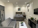 Newer construction attached ADU in Danville. Contemporary unit with luxury vinyl flooring, quartz countertops in kitchen and bathroom, high-end kitchen appliances (4-burner stove, full-size refrigerator, full-size microwave, and full-size dishwasher), in-unit laundry room with full-size washer and dryer, large shower, and wall-mounted TV. Includes cable, internet, and utilities. All kitchen and bathroom amenities are included - just bring your clothes and move in!