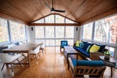 This one-year lease is ideal for academic sabbaticals, executive relocations, or families who want to experience the best of Chapel Hill and Carrboro before buying. The home is fully furnished, thoughtfully equipped, and designed for comfortable, everyday living. This 5-bedroom, 4-bath residence offers approximately 3,000 sq ft of flexible living space on a 0.4-acre lot, blending modern comfort with mid-century warmth. The location is exceptional: walk-zone to McDougle Elementary and Middle Schools, bikeable to downtown Carrboro, and just 5 miles to University of North Carolina at Chapel Hill. The main level features hardwood floors throughout, a cozy den with gas fireplace, a parlor well suited to puzzles or formal dining, and multiple flex spaces. A dedicated “teen room” works equally well as an office or artist studio, and a main-level bedroom with full bath is currently set up as a fully equipped office with sit/stand desk and printer. The updated kitchen includes a large center island, 2025 Bosch 800 appliances, a brand-new induction range, and easy access to the deck with a 4-burner Weber gas grill. An epic screened-in porch tucked among the trees is a favorite spot year-round. Upstairs, the home offers a well-designed bedroom layout. Two generous bedrooms share a full bath, another bedroom includes an ensuite bath and can be configured with either a queen bed or desk setup, and the primary suite is a true retreat with vaulted ceilings, backyard views, and a spa-like walk-in shower. Outdoor spaces are a standout. The sunny front yard includes fenced vegetable and flower gardens (enjoy cut flowers all summer), while the backyard features a basketball court with flood lights, a paved seating area with Adirondack chairs, and a ninja line. The property backs to a 10-acre wooded lot, creating a peaceful natural buffer and exceptional privacy. We love this home and neighborhood deeply and are seeking a trustworthy couple or family who will enjoy and care for it during our sabbatical year. Rent Includes High-speed internet Yard maintenance Professional house cleaning every two weeks