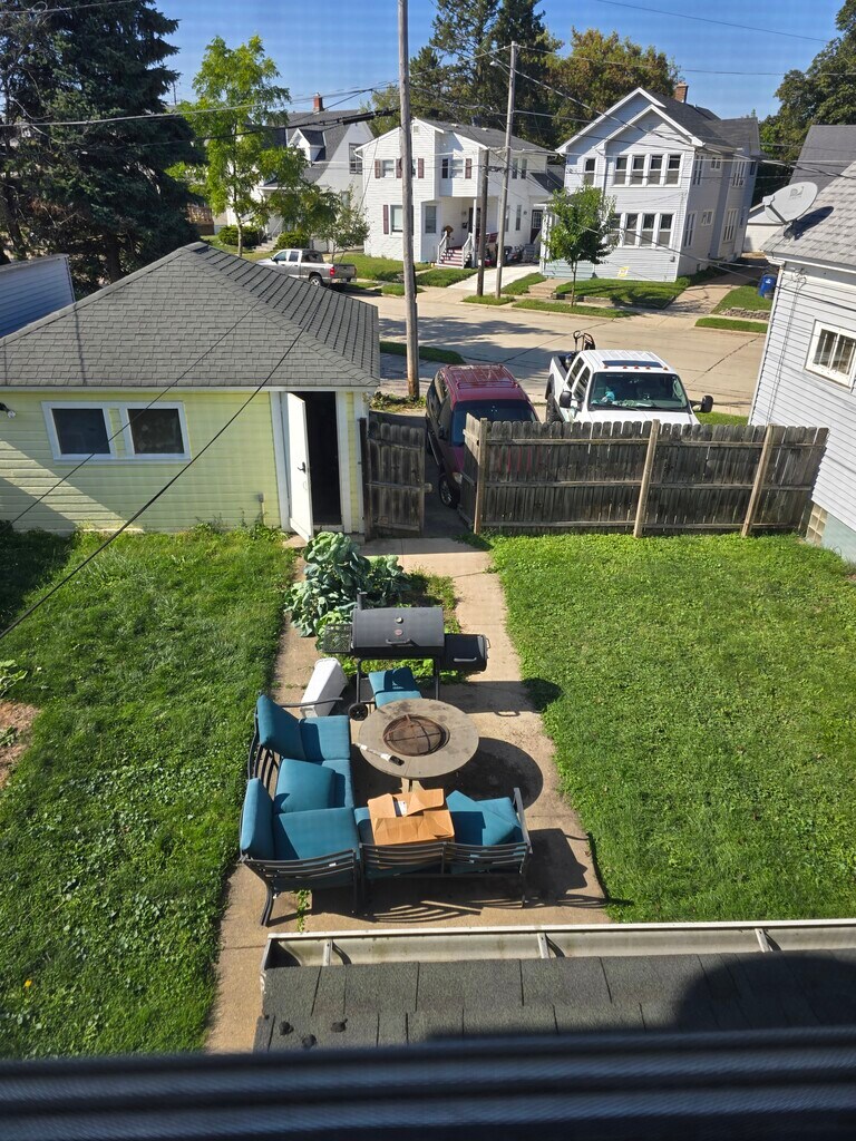 Charming bungalow built in the German/Polish tradition. Rich of the history of Racine and the surrounding area up into Milwaukee at the turn of the 20th century. home was built as a duplex with an upstairs living area and a downstairs- each with separate front and rear doors, a beautiful porch, a rear fenced area for private enjoyment a d fresh grass, a parking spot. Front traditional wood porch and well maintained so that you can catch the cool breeze in the late evening from land to lake on Clarence Street (which is a quiet, mature, older neighborhood with big trees. all Water Systems have been updated by City so safe piping and Safe Water! the unit itself has the attic above it that could be used for storage. a stairwell that has space available for coats and Boots and then a second door on second floor that is locked entering into the kitchen, which then enters into the common living area. the bathroom is right off of that common living area as are the two bedrooms. Unit is fairly spacious for the money. this area of Racine close to the school and the River Parkway which jogging hiking and generally taking a nature great possibilities. and, it is high on the hill overlooking other parts of Racine- generally a very nice area to live this life.