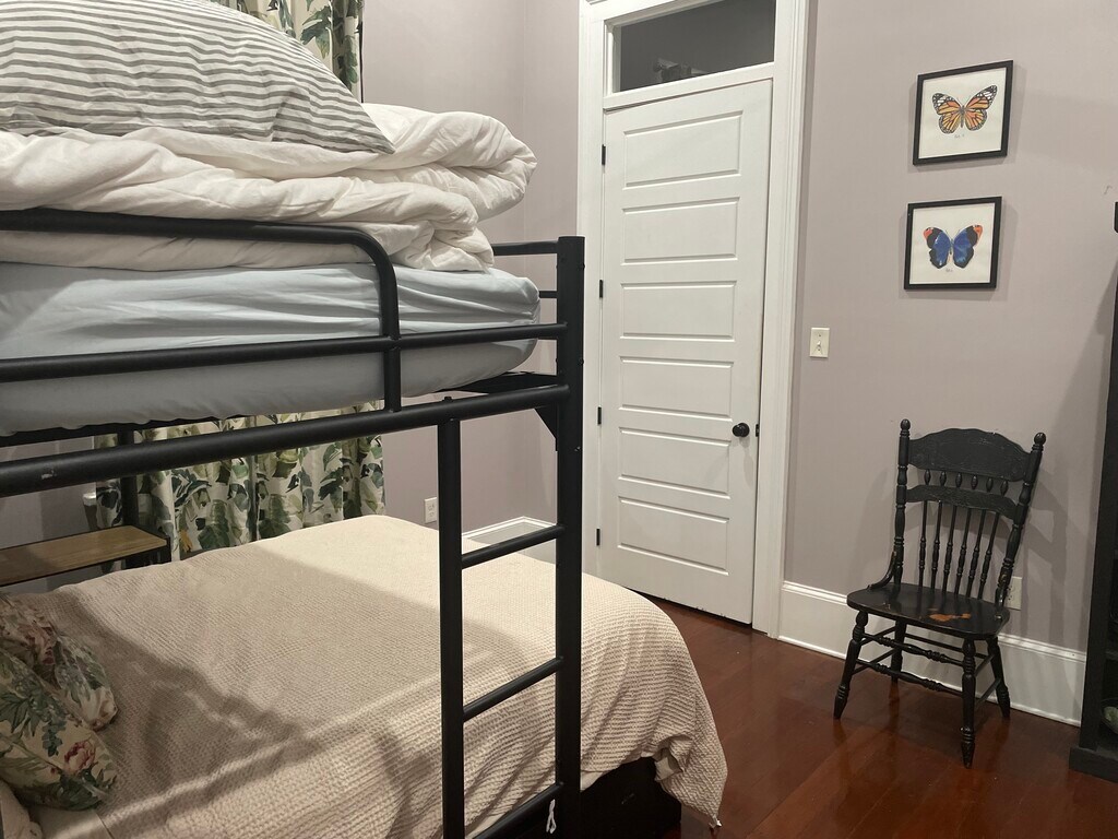 This tastefully remodeled 19th century Victorian house is a 15 minute walk to the nonstop jazz of Frenchman St, a 20 minute walk to the heart of the French Quarter, and a five minute drive from dozens of top-tier restaurants. Two bedrooms, and one library that converts to a third bedroom with a sofa bed and closet. The first bedroom is ensuite, with a King-sized bed. The middle bedroom has a queen bunk bed and closet. Built in the 1890s, but remodeled recently. Gas range, with vent, new oven and fridge. Located on a quiet street, this stay provides the perfect homebase for experiencing a vibrant city full of parades, parties, and festivals.