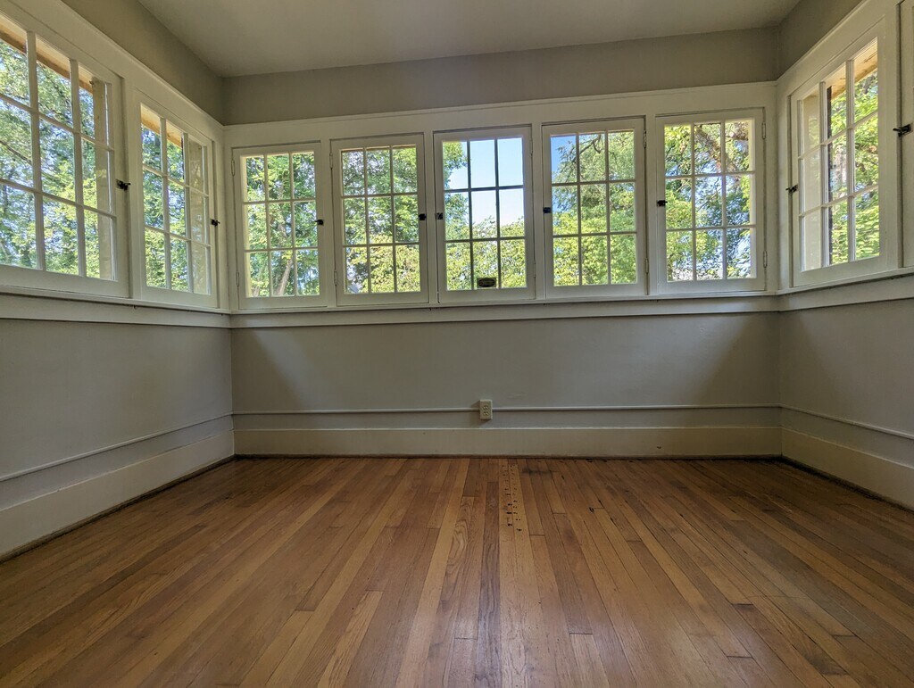 First floor and basement unit of two-apartment house in Ladd's Addition. Two bedrooms, two bathrooms, sunroom, living room, sauna, large finished basement rooms. Gas fireplace, washer/dryer, built-in bookshelves, wood floors. Walk score 91, close to parks, cafes, bus and MAX.