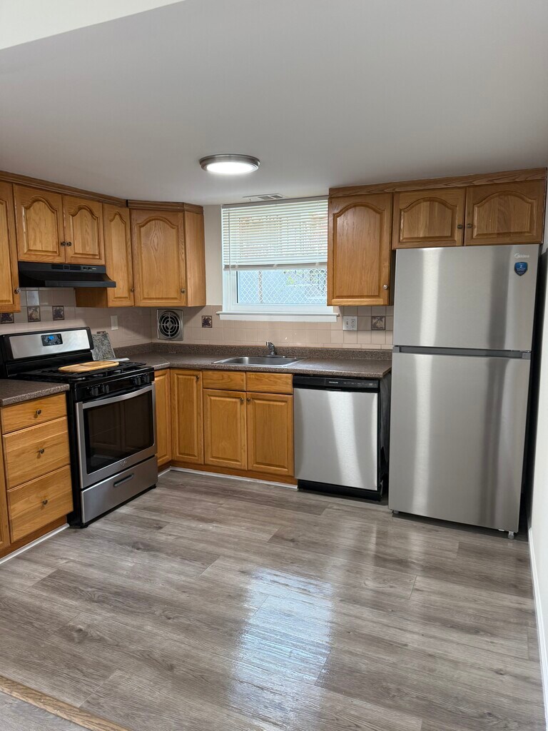 For rent 2 bed 1 bath 1st floor apartment after renovation near School and bus stop. New windows, bathroom and appliances. Separate laundry room. Fenced backyard. Family up to 4 people with good credit score. First, Last and Security deposit.