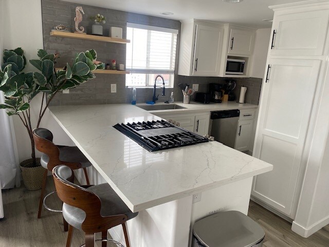 STEPS TO BEACH in North MANHATTAN BEACH (El Porto) Lower unit. JUST REMODELED! ALL NEW! This unit has it all! This is a quiet 2 unit building on Desirable Moonstone St. in El Porto. Full 2 Bedroom--2 Bath Beach Unit. One block to the Beach! Great Neighborhood Vibe from all the neighbors. Best street in El Porto. I/2 Block to the beach! OCEAN VIEW. NEW Stove, NEW Refrigerator, Dishwasher, Microwave, Ceiling Fans. ALL NEW FLOORS. Fireplace, Recessed Lighting, Balcony.. 2-car Garage INCLUDED.. . PRIVATE WASHER /DRYER IN GARAGE BRIGHT. Sunny & Airy.... Walk to Restaurants, Bars and Markets....10 Minutes to LAX.,LMU, 105 Frwy. and Aerospace Companies. 15 min to Silicon Beach and Playa Vista. MUST SEE! CALL OR TEXT WAYNE FOR VIEWING OR MORE INFO...