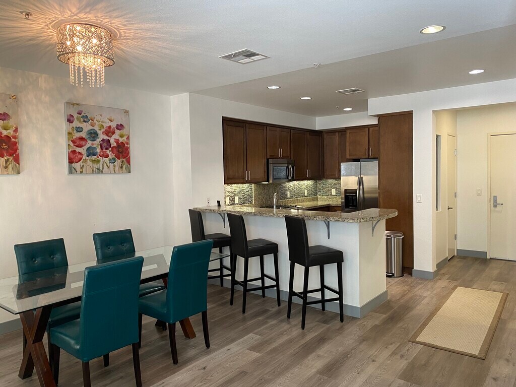 Luxury Condo in the Ascent Warner Center This condo has 1100 sqft of living space, 2 bedrooms with its own private baths. The Unit has a Cook's kitchen with granite counters, and stainless steel appliances. Master bedroom comes with a queen-sized bed, walk-in closet, private bathroom with a double sink vanity, and extra large bathtub. This unit has its own washer and dryer. It is pre-wired for high-speed internet. Private large balcony. The unit is fully furnished with 2 large flat screen TVs, a dining table, a sectional sofa, and queen-sized beds. The Complex offers amenities including a pool & SPA with cabanas, outdoor lounges with a fireplace, a clubhouse with a kitchen, an entertainment lounge with Flat-Panel TVs, a fitness center, BBQs, and WiFi throughout. There are tranquil courtyards with lush landscaping, and gate-controlled covered parking. The unit is only a couple of miles from the 101. The unit is central and close to the 101, 405 and the 118. This unit is within walking distance to Westfield Village, Topanga Mall, Costco, and a ton of restaurants. CALL NOW!